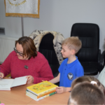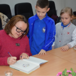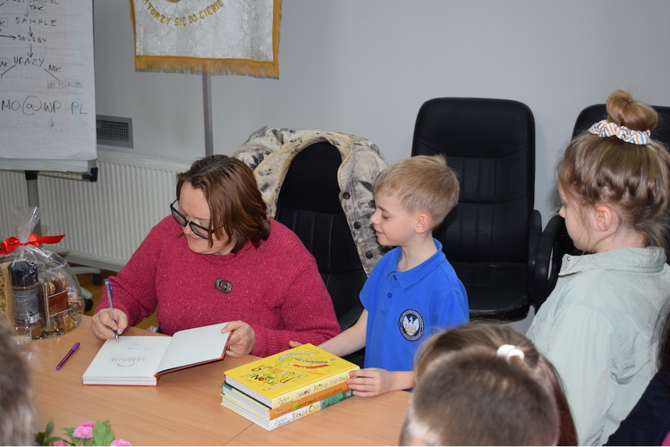 Dnia 11 kwietnia 2022,  klasy I-III spotkały się z pisarką p.Justyną Bednarek. W czasie spotkania autorka zaprezentowała swoje książki, oraz czytała fragmenty niektórych z nich. Prezentowała również rekwizyty, które wykorzystała do pisania niektórych książek. Podczas spotkania, pisarka podkreślała, że nigdy nie jest za późno, aby realizować swoje marzenia oraz zachęcała, abym jak najwięcej czytać – bo książka uczy, bawi i wychowuje!