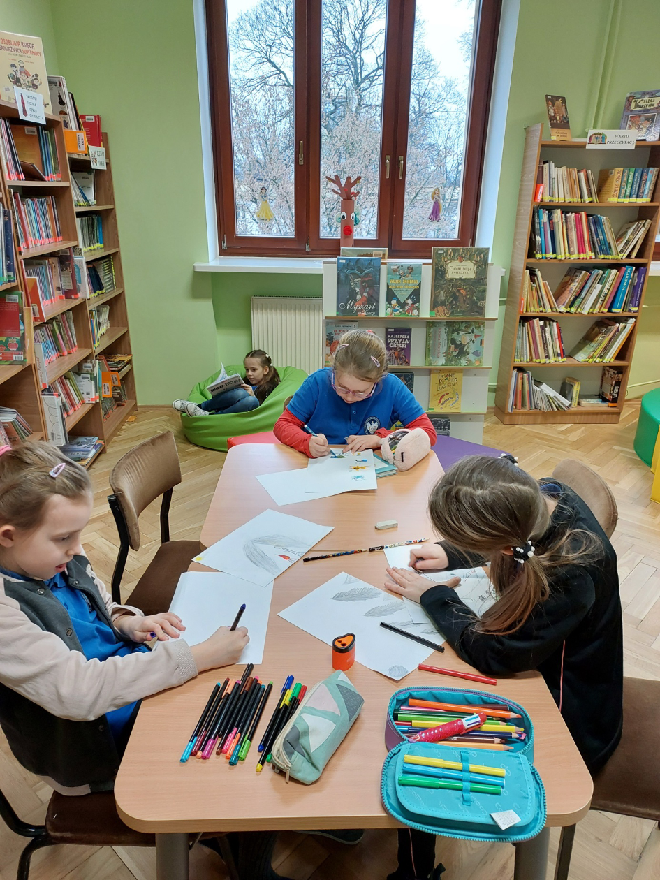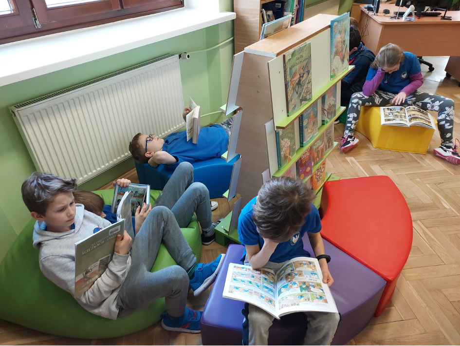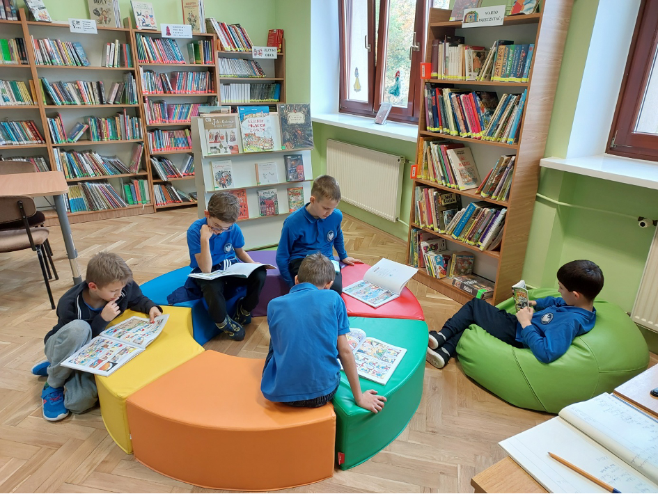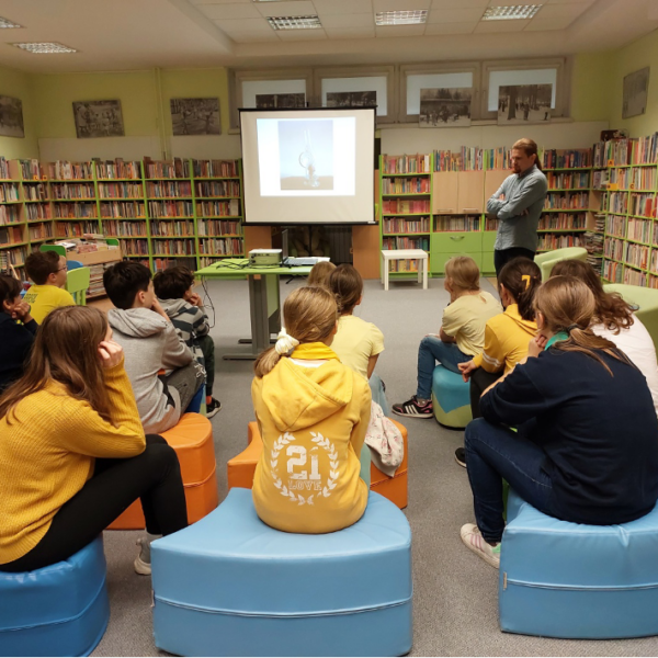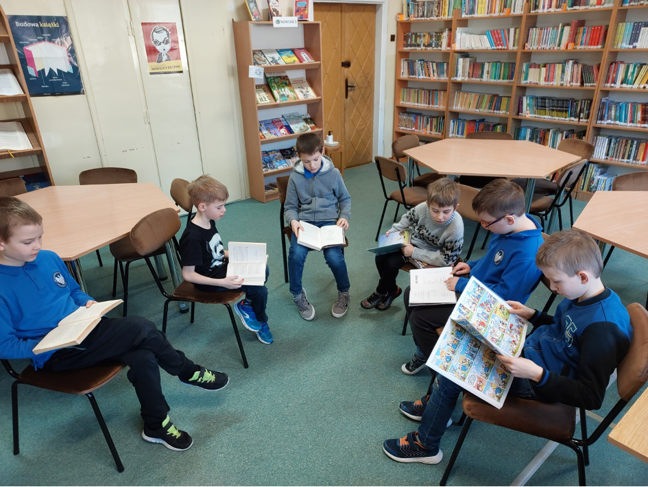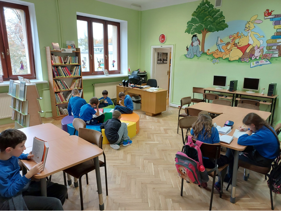 W ramach współpracy z Biblioteką Publiczną im. Stanisława Staszica w Dzielnicy Bielany m. st. Warszawy,  odbyło się kilka zajęć czytelniczych w których brali udział nasi uczniowie. Tematyka zajęć była bardzo różnorodna, m.in. zajęcia poświęcone były patronom roku.