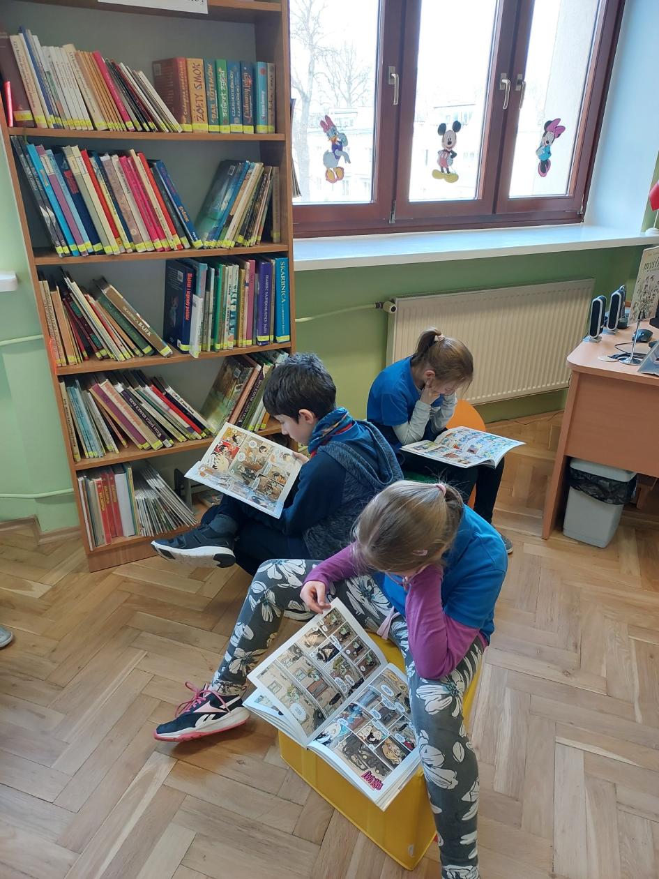 W czasie zajęć bibliotecznych uczniowie klasy 3a, czytali wybrane komiksy oraz tworzyli własne.