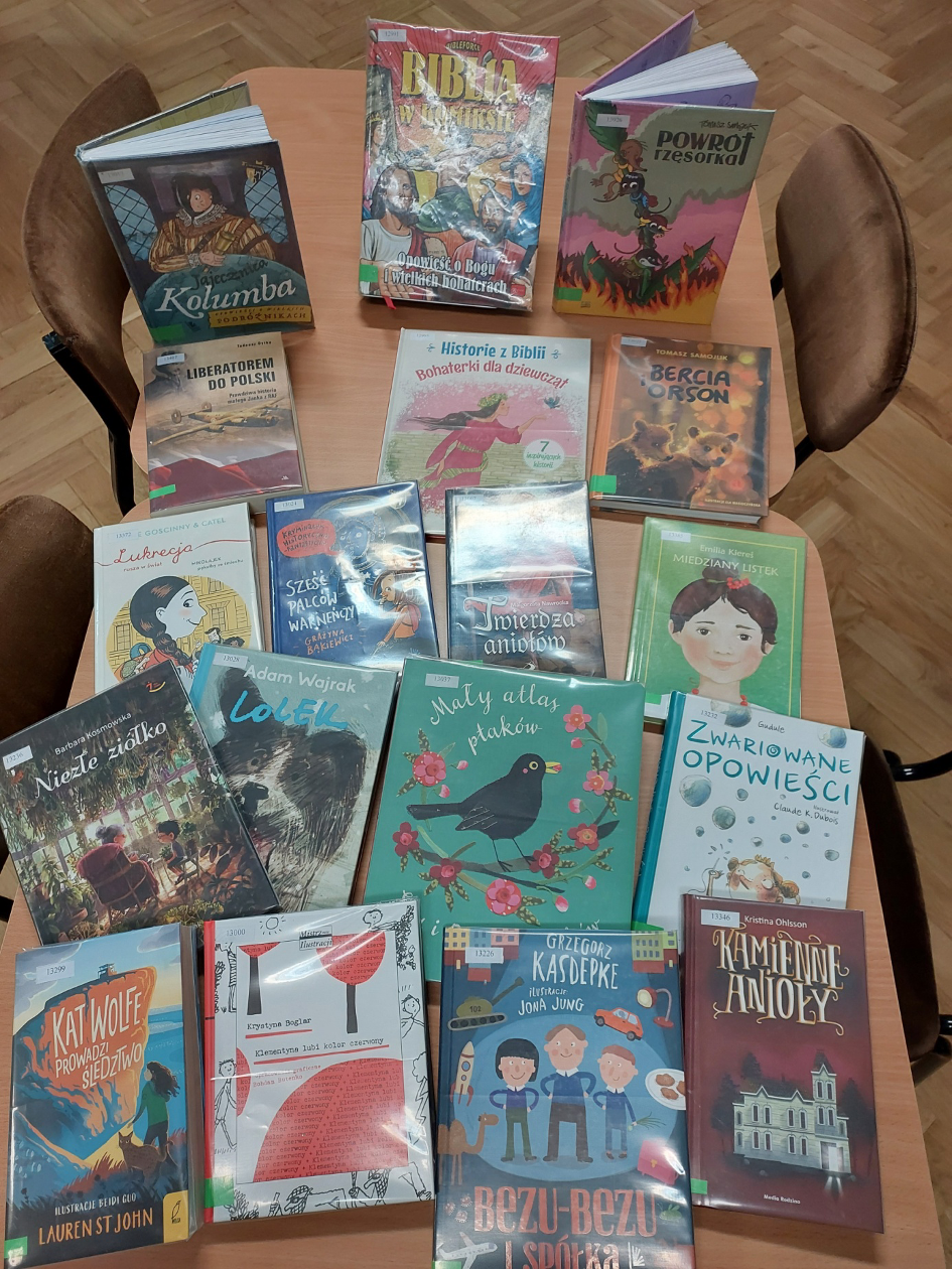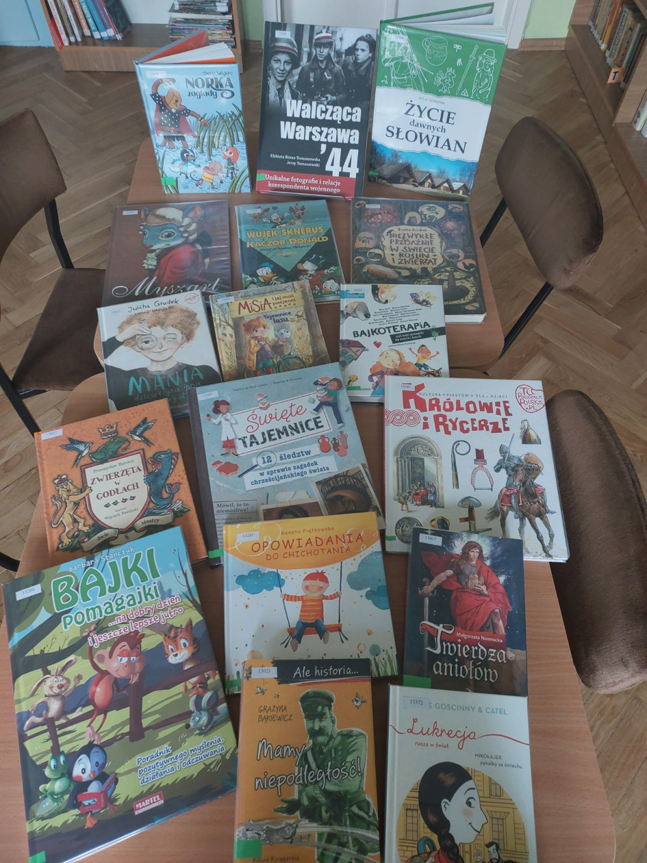 ·      księgozbiór biblioteki wzbogacił się o ponad 425 woluminów – zakupiono nowości czytelnicze, lektury i audiobooki.
