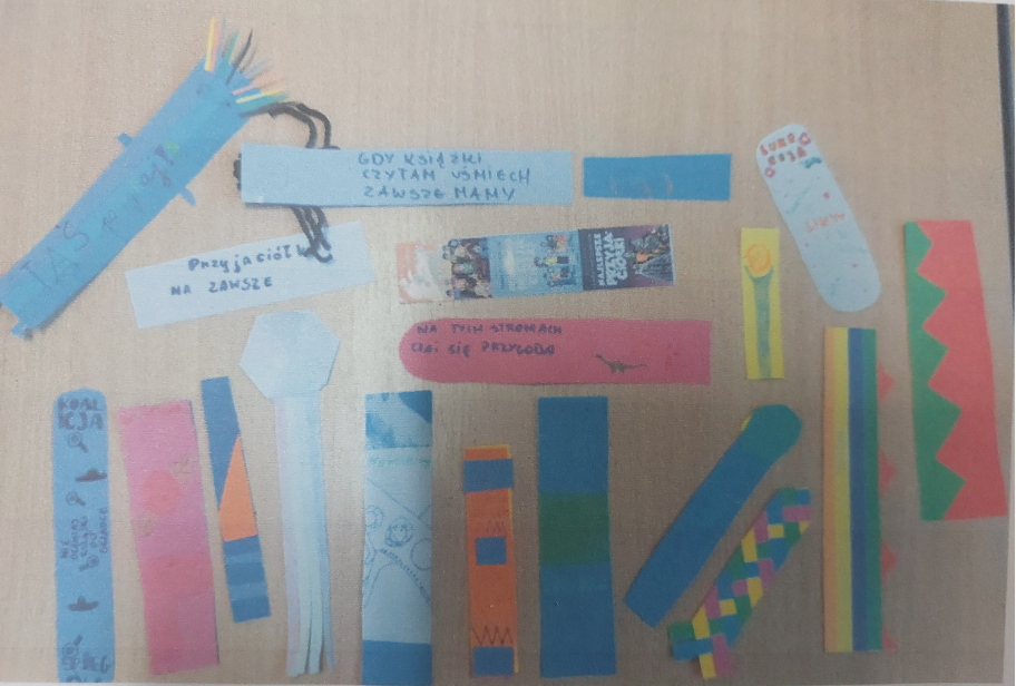 Uczniowie klasy 5a i 6a wraz z wychowawcami w ramach zajęć promujących czytelnictwo wykonali zakładki do książek.
