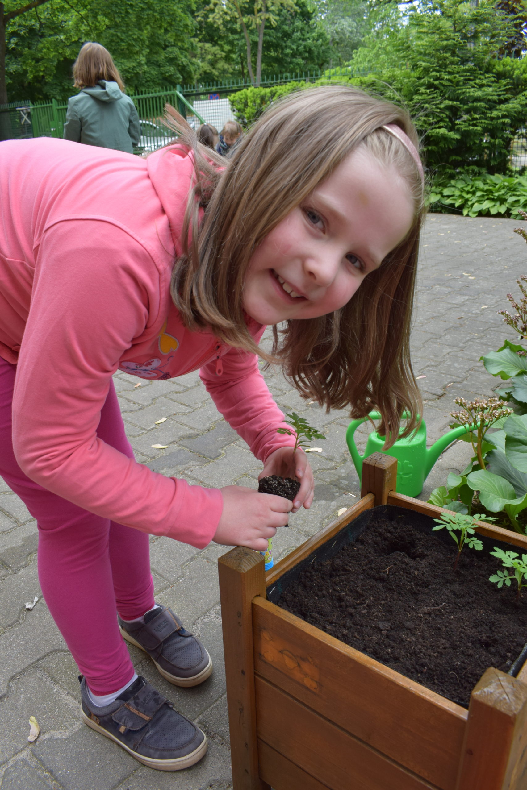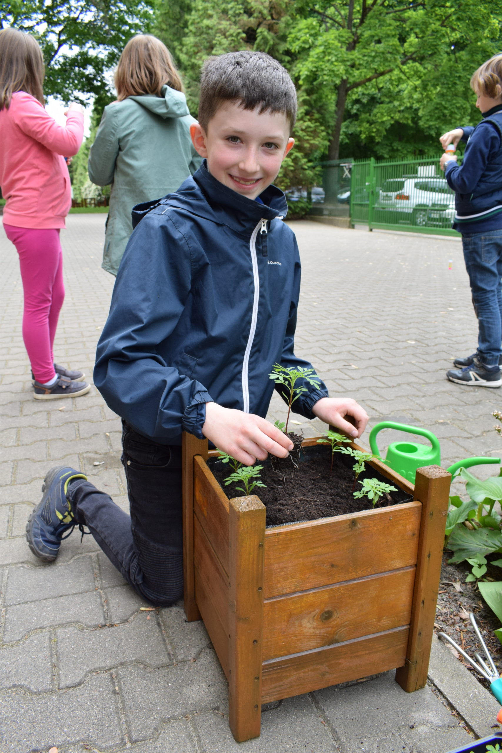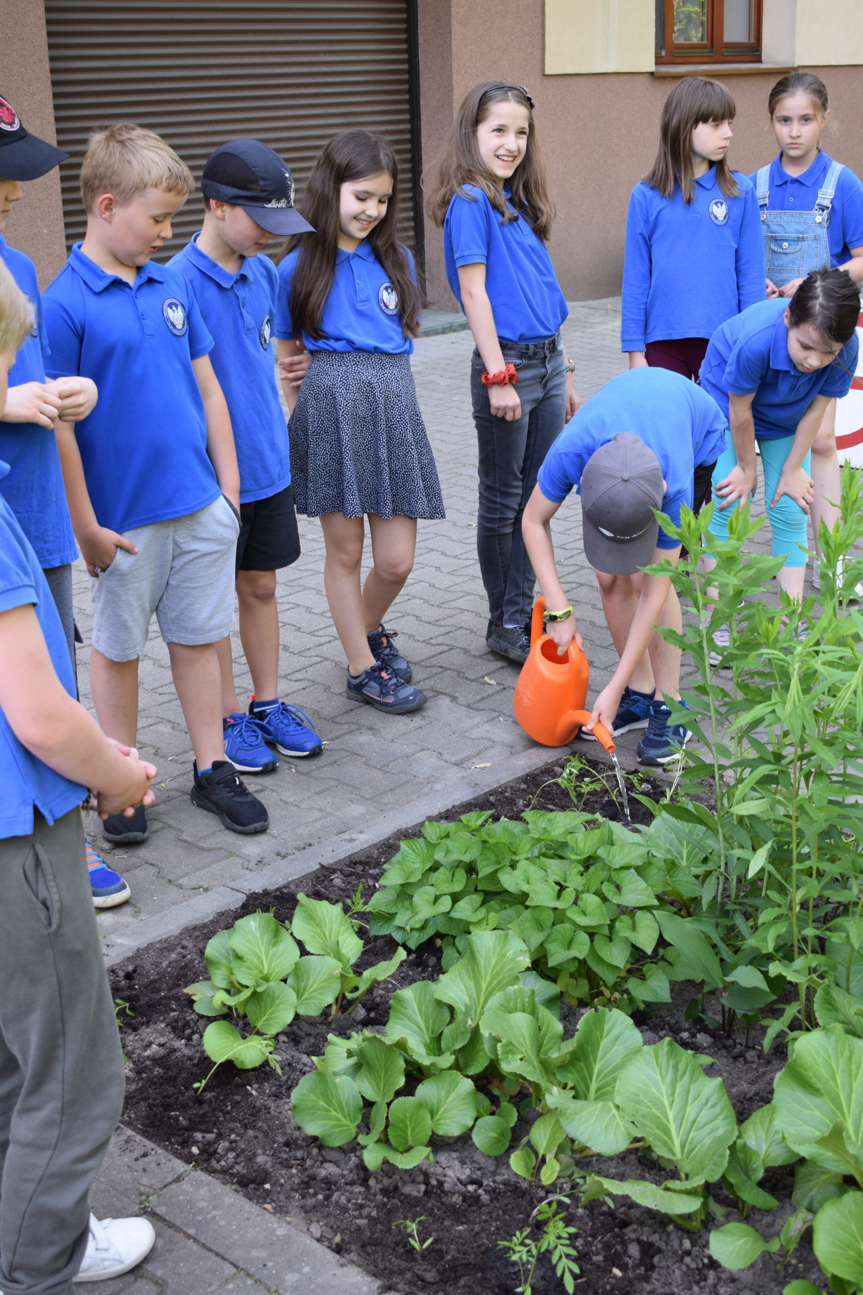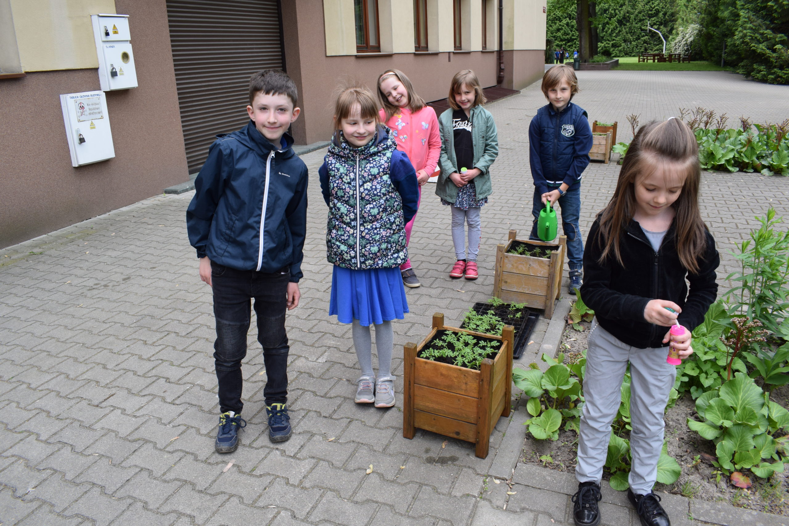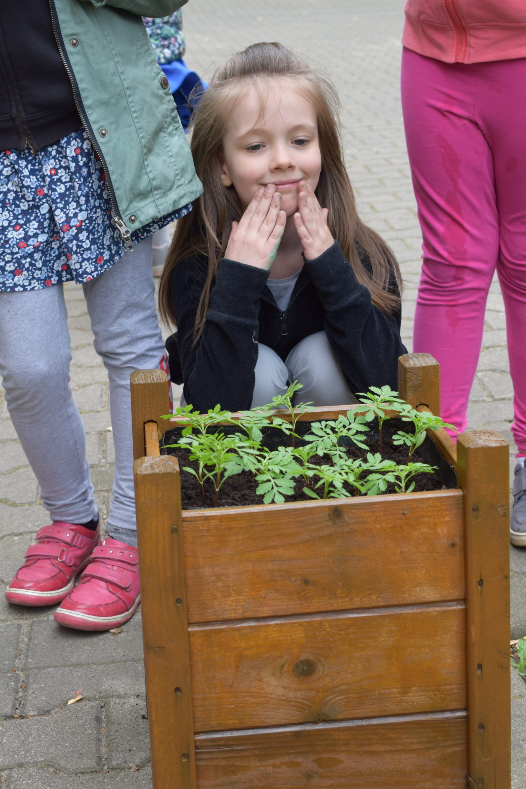 Na wiosnę uczniowie klas I-III postanowili założyć hodowlę roślin. Do uprawy zostały wybrane aksamitki. Każda klasa posiała inną odmianę tak, aby pokazać różnorodność jednego gatunku. Uczniowie systematycznie podlewali rośliny i bacznie obserwowali wzrost. Także w odpowiednim momencie pikowali wysiane kwiaty, aby mogły lepiej się rozwijać. Na początku czerwca aksamitki zostały przesadzone w donice, skrzynki oraz na szkolne rabatki. Mamy nadzieję, że niebawem kwiaty będą pięknie zdobiły teren szkoły.