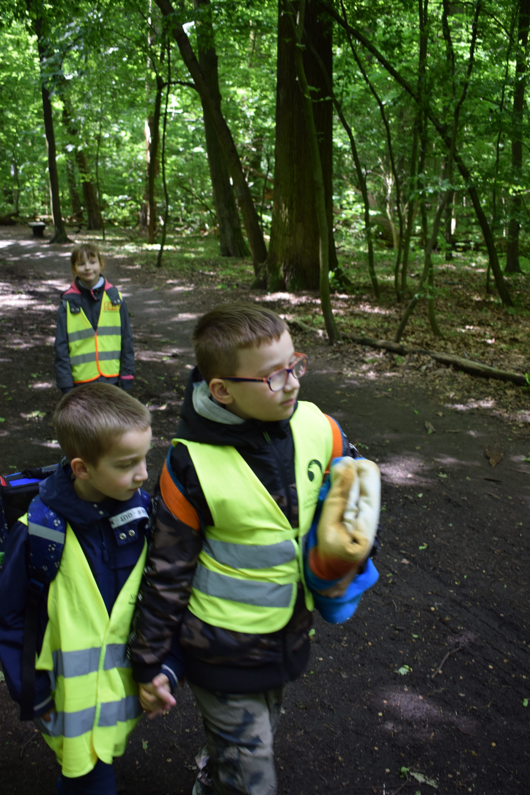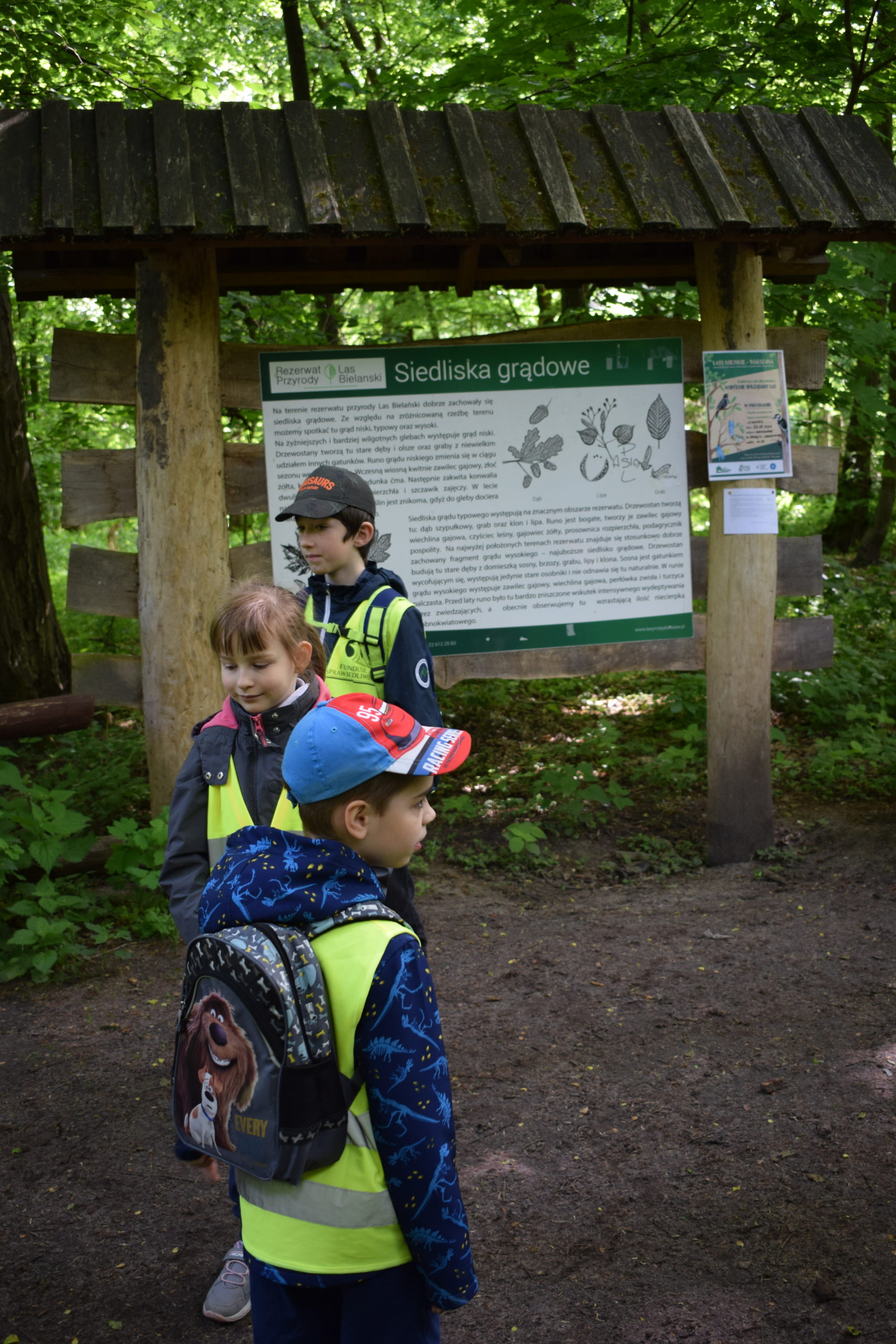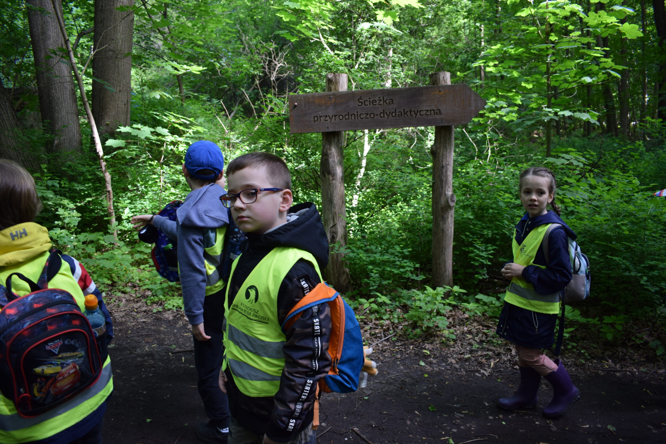 Kolejna wycieczka uczniów klas pierwszych odbyła się do Lasu Bielańskiego 27 maja. W tym urokliwym miejscu dzieci mogły podziwiać piękno otaczającej przyrody. Udało się także zaobserwować kilka gatunków ptaków, m. in. dzięcioła czarnego. Podczas wyprawy pierwszaki dotarły do kościoła Niepokalanego Poczęcia NMP, gdzie chwilę się pomodliły. Zobaczyły tam również domki pokamedulskie. Wiele radości w tym dniu dzieciom sprawiła także zabawa na karuzeli znajdująca się na terenie przykościelnym.