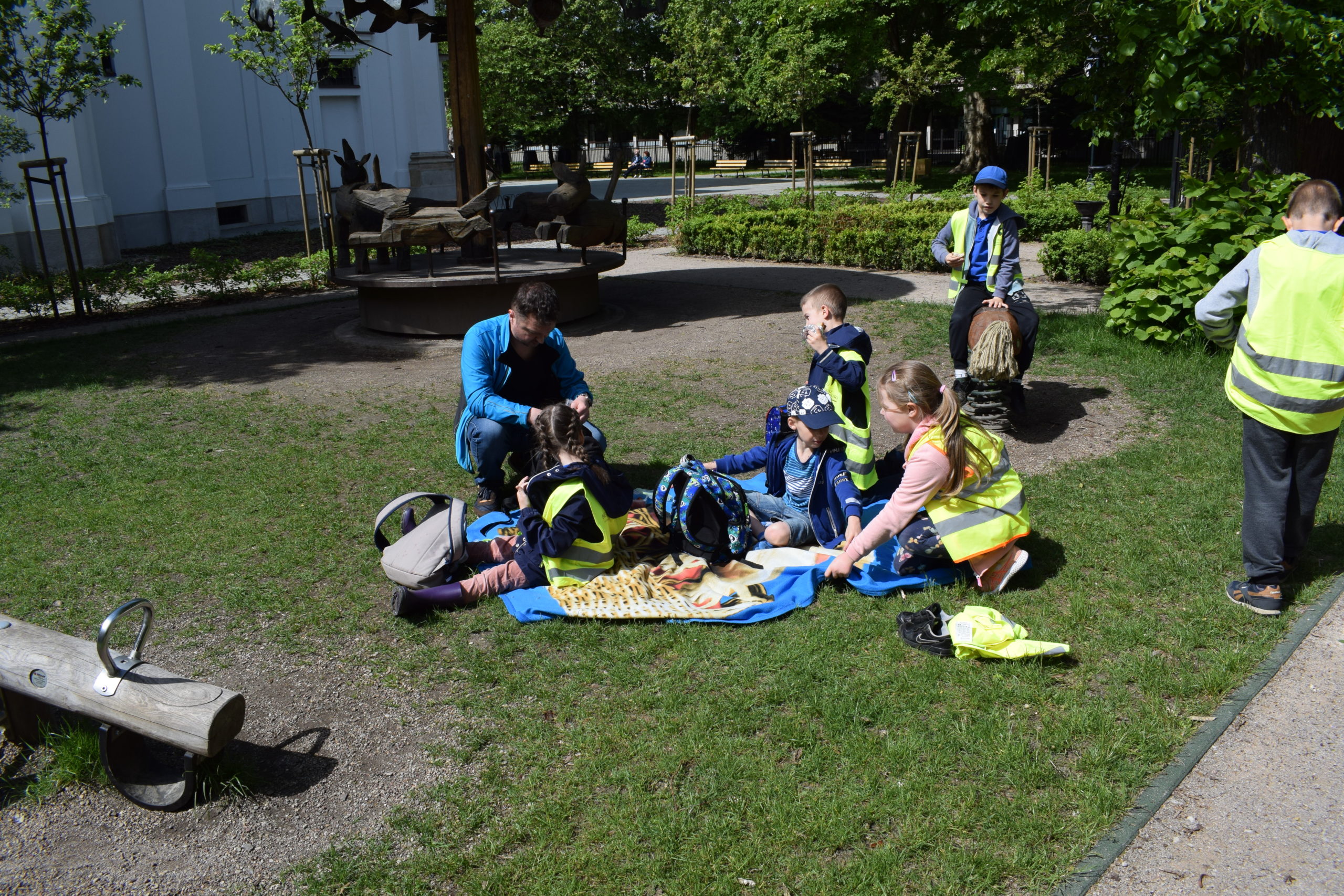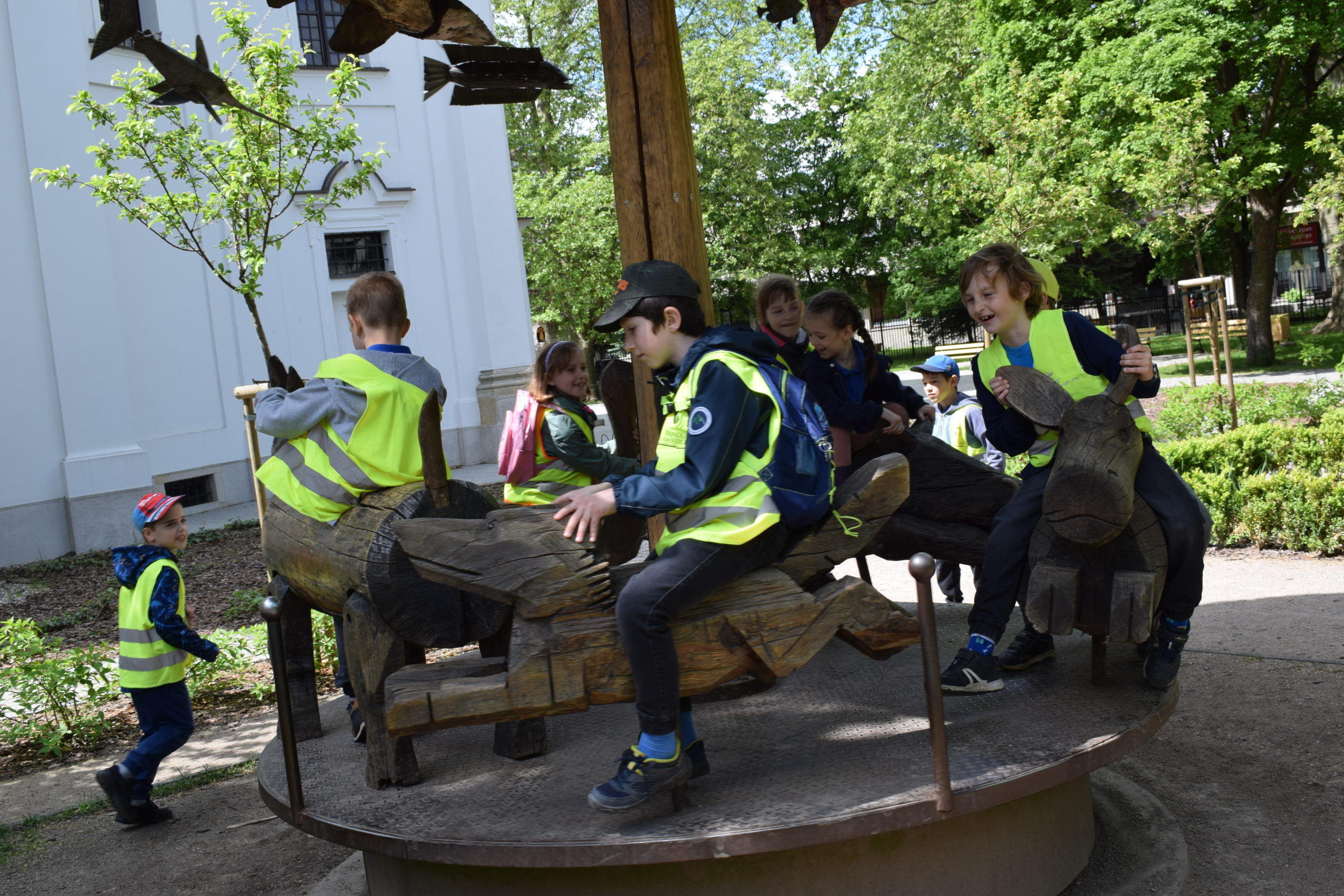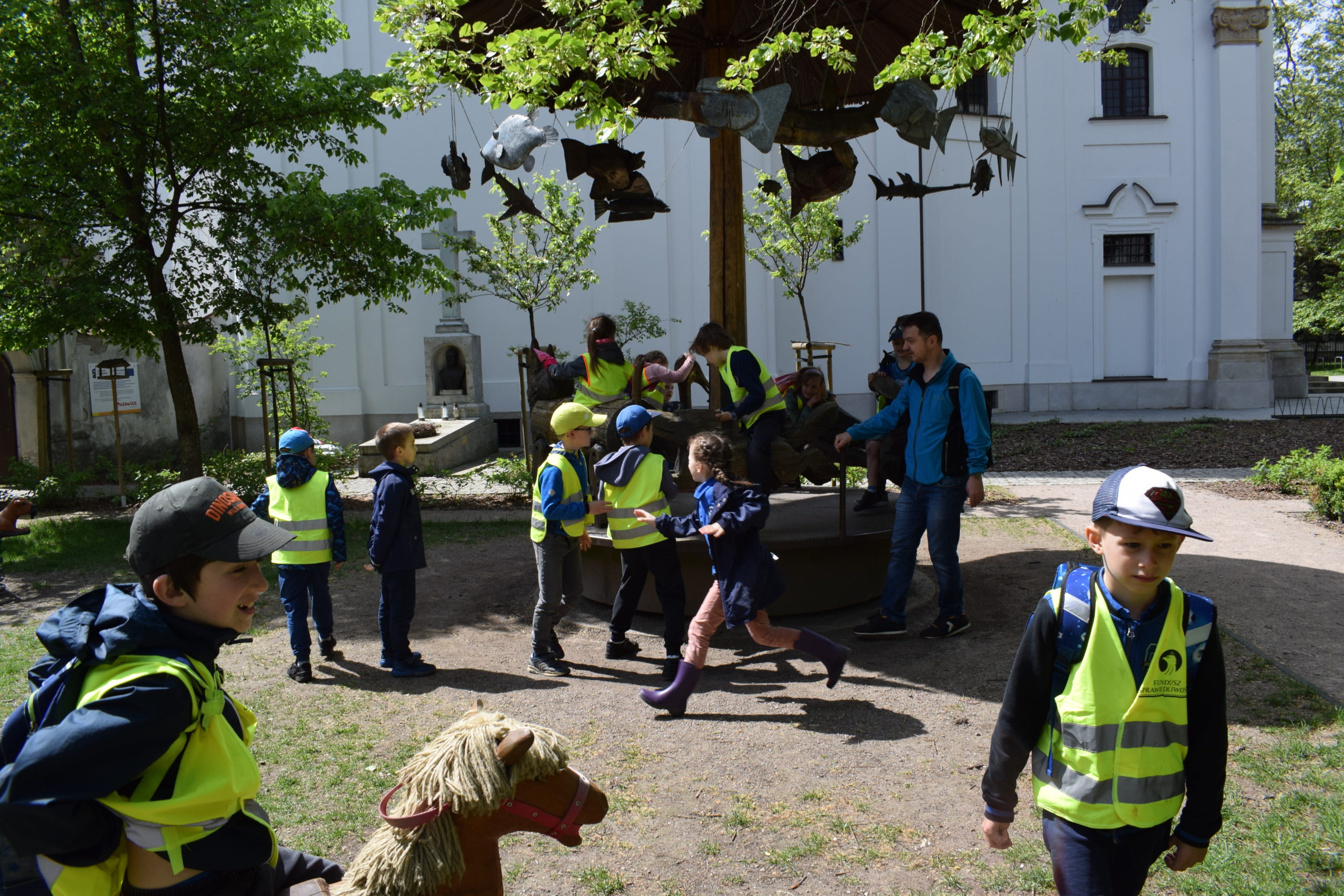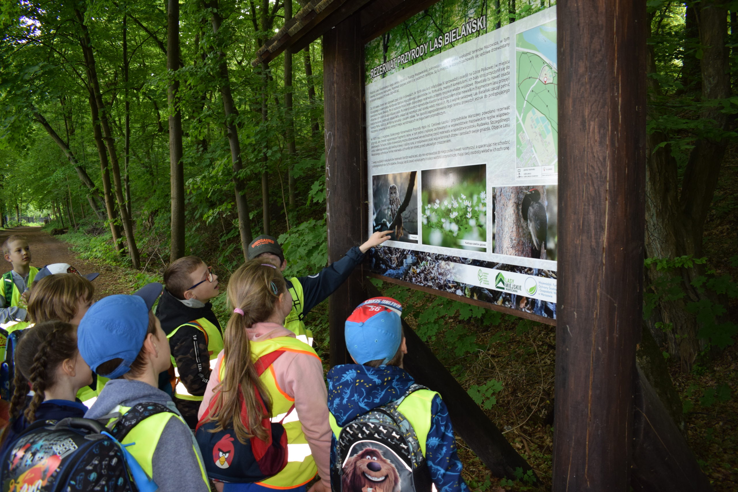 Kolejna wycieczka uczniów klas pierwszych odbyła się do Lasu Bielańskiego 27 maja. W tym urokliwym miejscu dzieci mogły podziwiać piękno otaczającej przyrody. Udało się także zaobserwować kilka gatunków ptaków, m. in. dzięcioła czarnego. Podczas wyprawy pierwszaki dotarły do kościoła Niepokalanego Poczęcia NMP, gdzie chwilę się pomodliły. Zobaczyły tam również domki pokamedulskie. Wiele radości w tym dniu dzieciom sprawiła także zabawa na karuzeli znajdująca się na terenie przykościelnym.