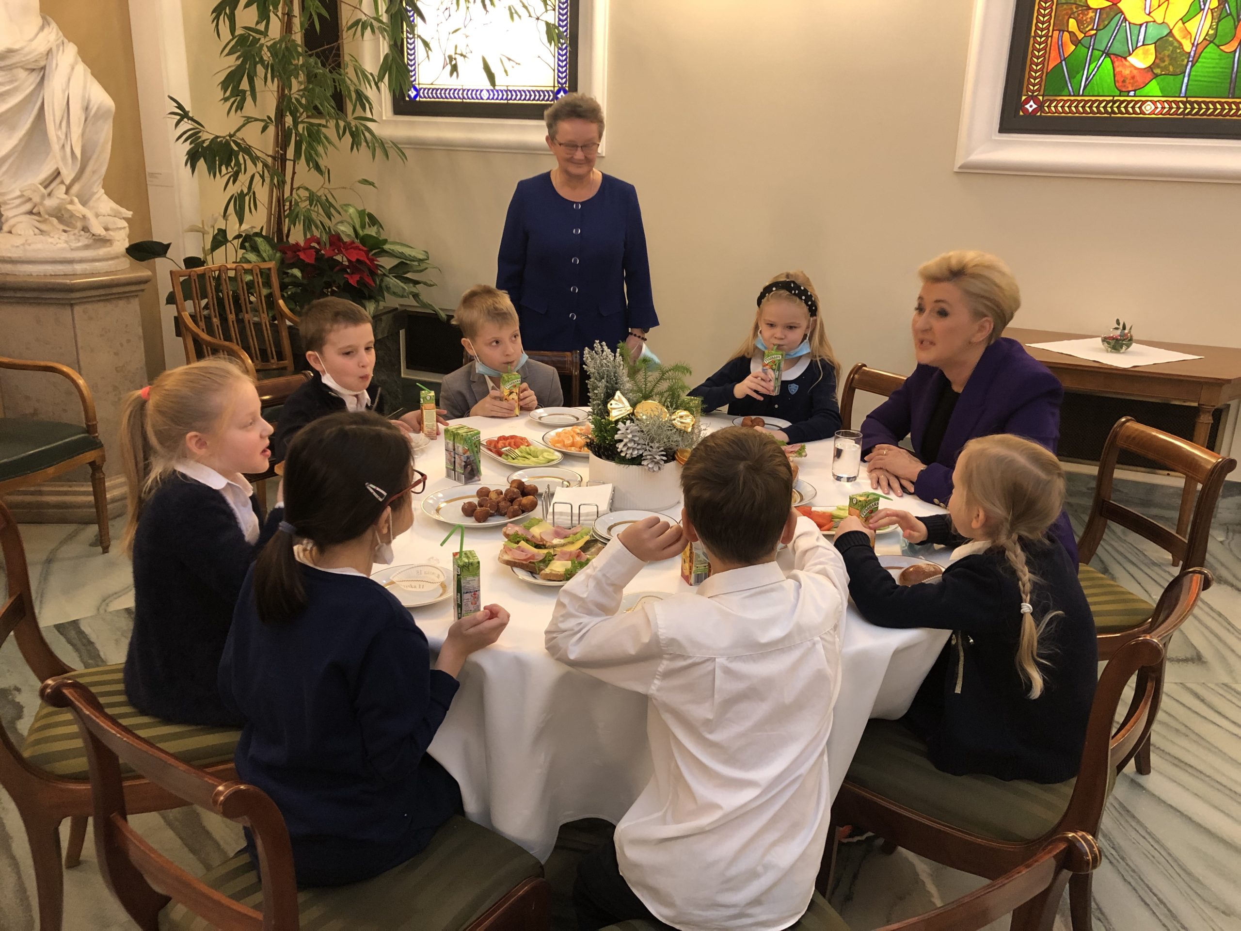 7 grudnia nasi pierwszoklasiści udali się na spotkanie z Pierwszą Damą Panią Agatą Kornhauser-Dudą. Na początku wielkiej przygody, uczniowie zwiedzili Pałac Prezydenta RP, poznali jego historię a nawet odkryli jedno tajemne przejście. Uczniowie byli zachwyceni pięknem Pałacu oraz jego wielkością jednak najatrakcyjniejszym punktem było wspólne śniadanie z Małżonką Pana Prezydenta. Więcej informacji można uzyskać wchodząc w link znajdujący się poniżej.