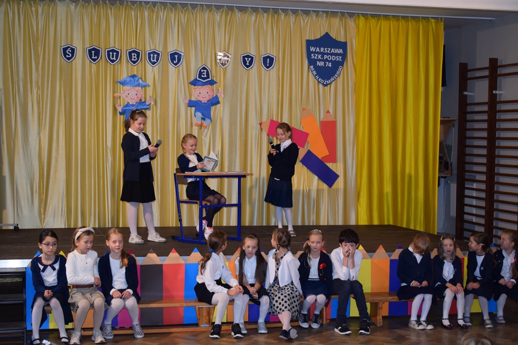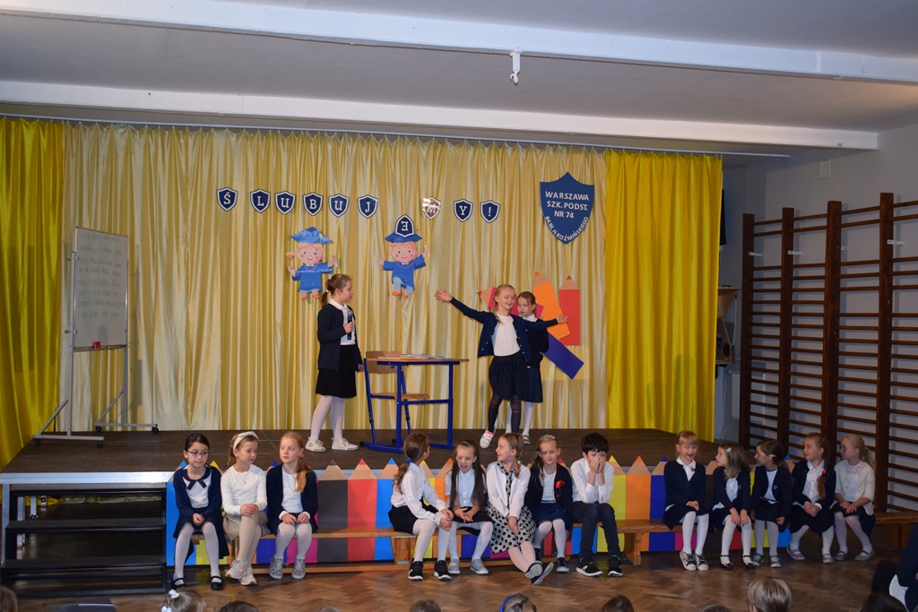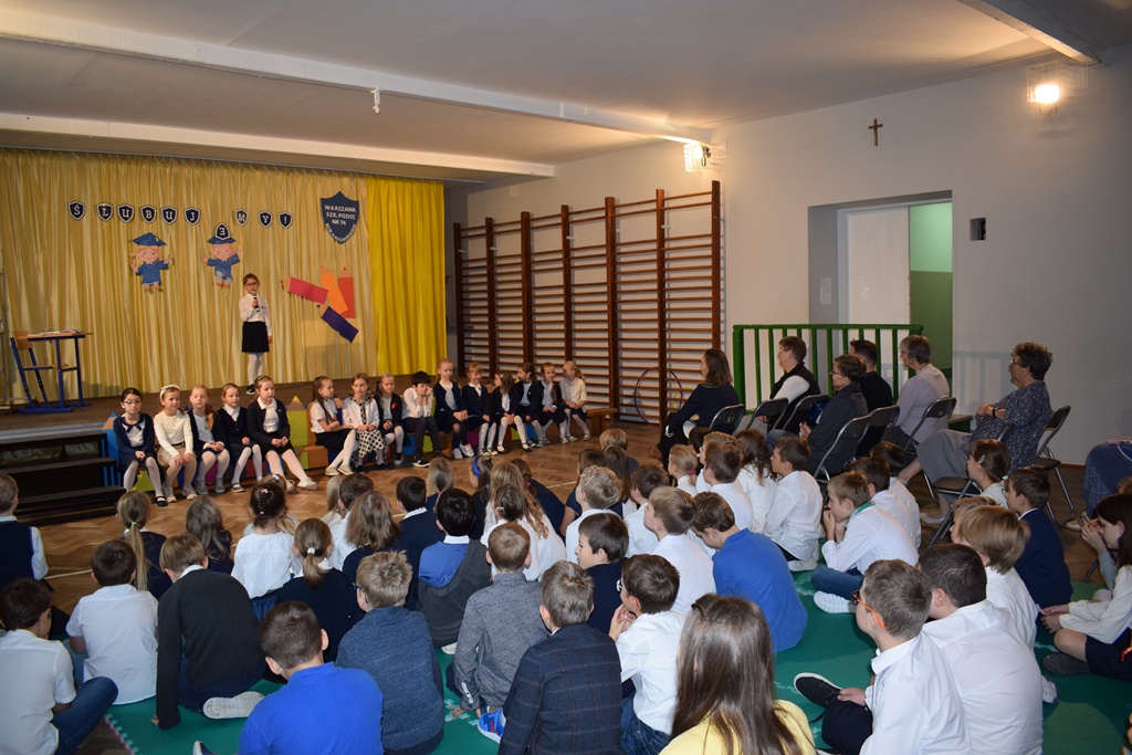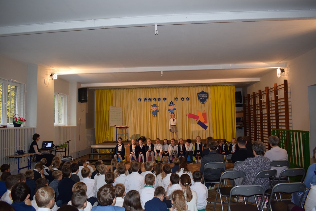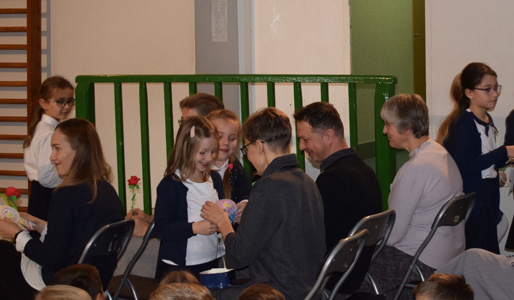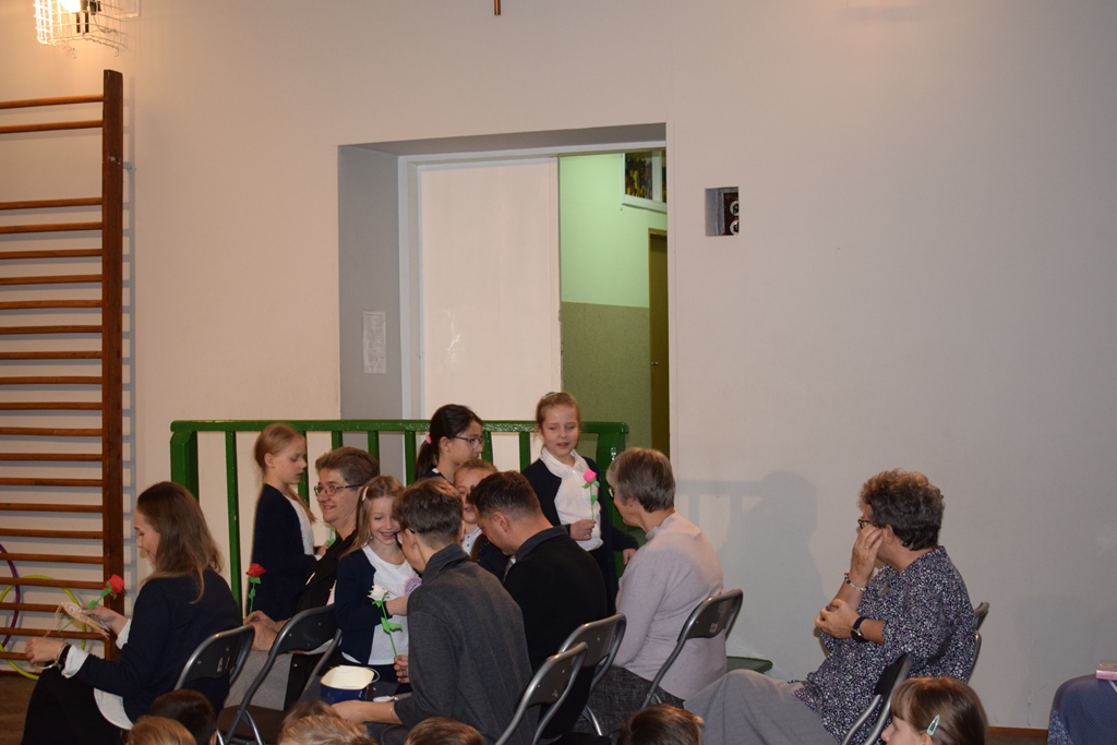 14 października 2022 r. dzieci z kółka teatralnego kl. I-III przygotowały krótką część artystyczną dla swoich nauczycieli. Wśród radości, dobrego humoru i wdzięczności, najmłodsi uczniowie złożyli serdeczne życzenia nauczycielom i pracownikom szkoły. Nie zapomnieli o drobnych upominkach – własnoręcznie zrobionych różach. Wychowawców dodatkowo udekorowali medalami dla wspaniałych nauczycieli. Następnie uczniowie klas pierwszych wystąpili ze swoim przestawieniem, które przygotowali z okazji ślubowania. Również tego dnia podczas zajęć wspominaliśmy postać św. Jana Pawła II w ramach Dnia Papieskiego.