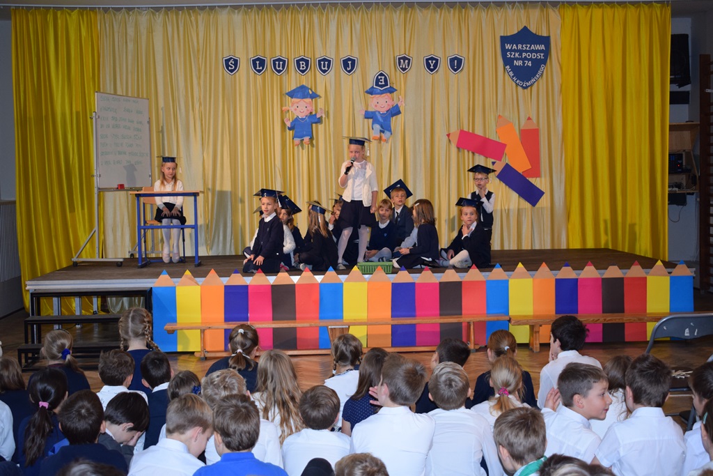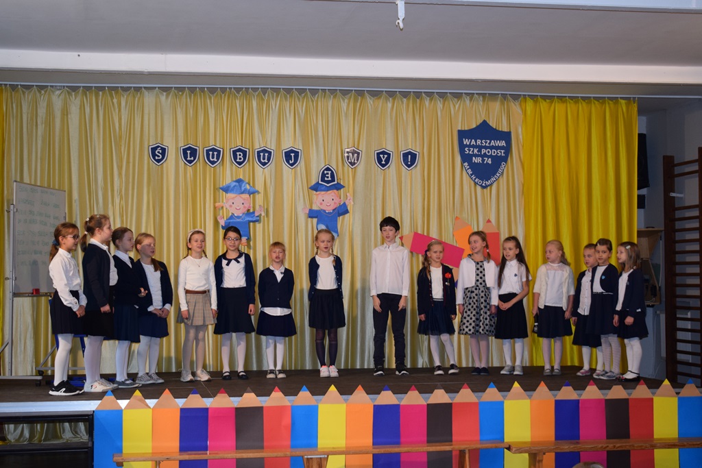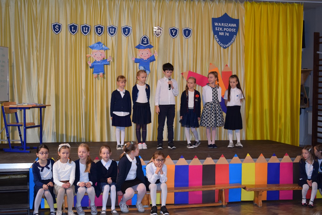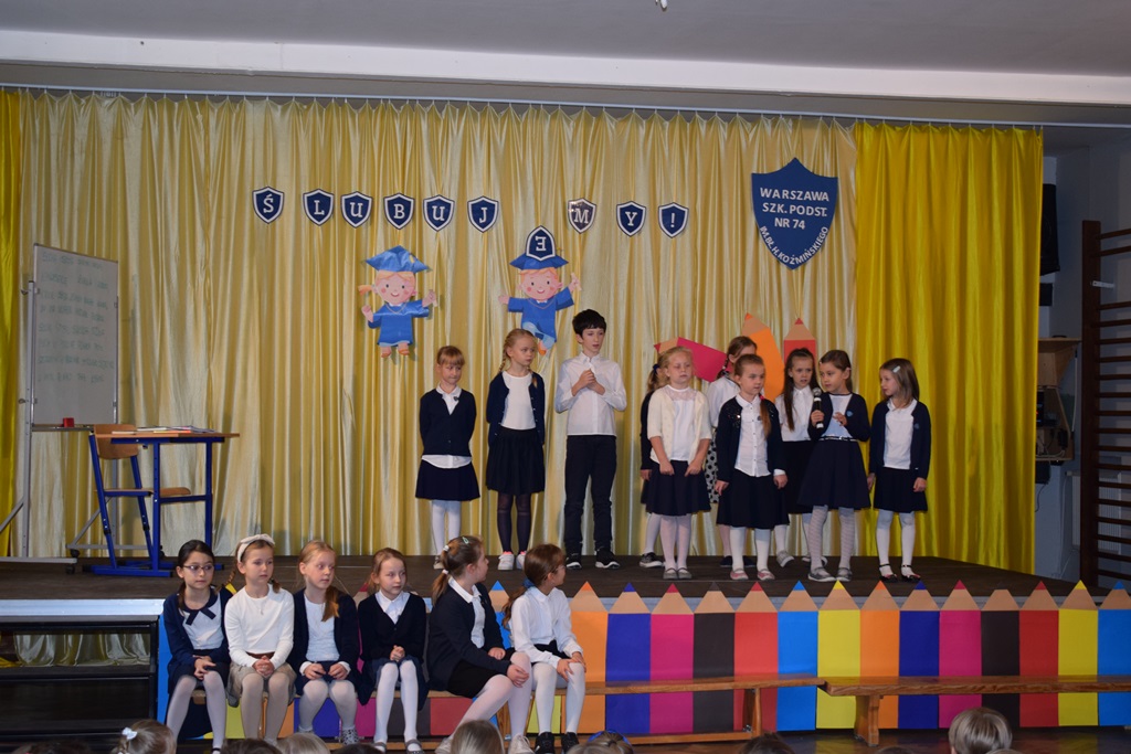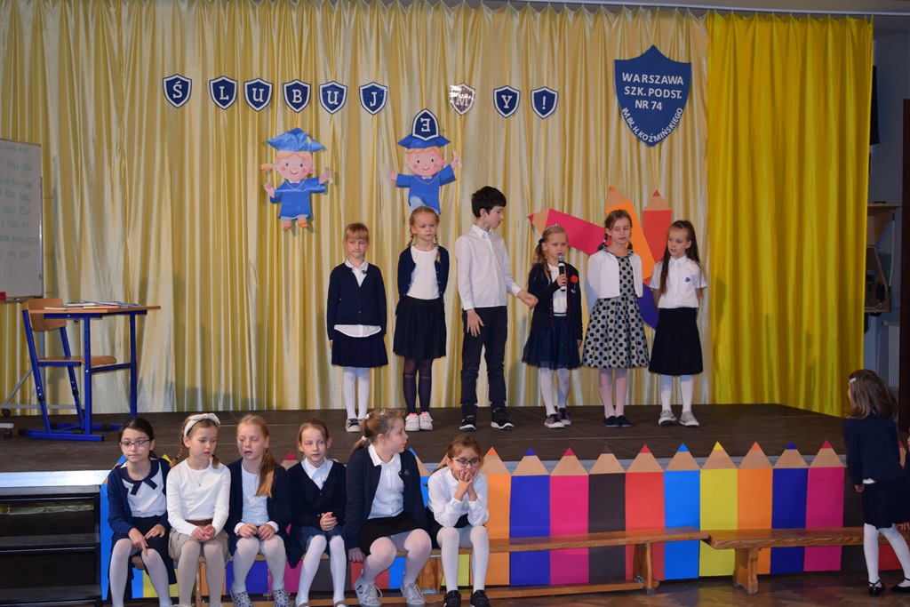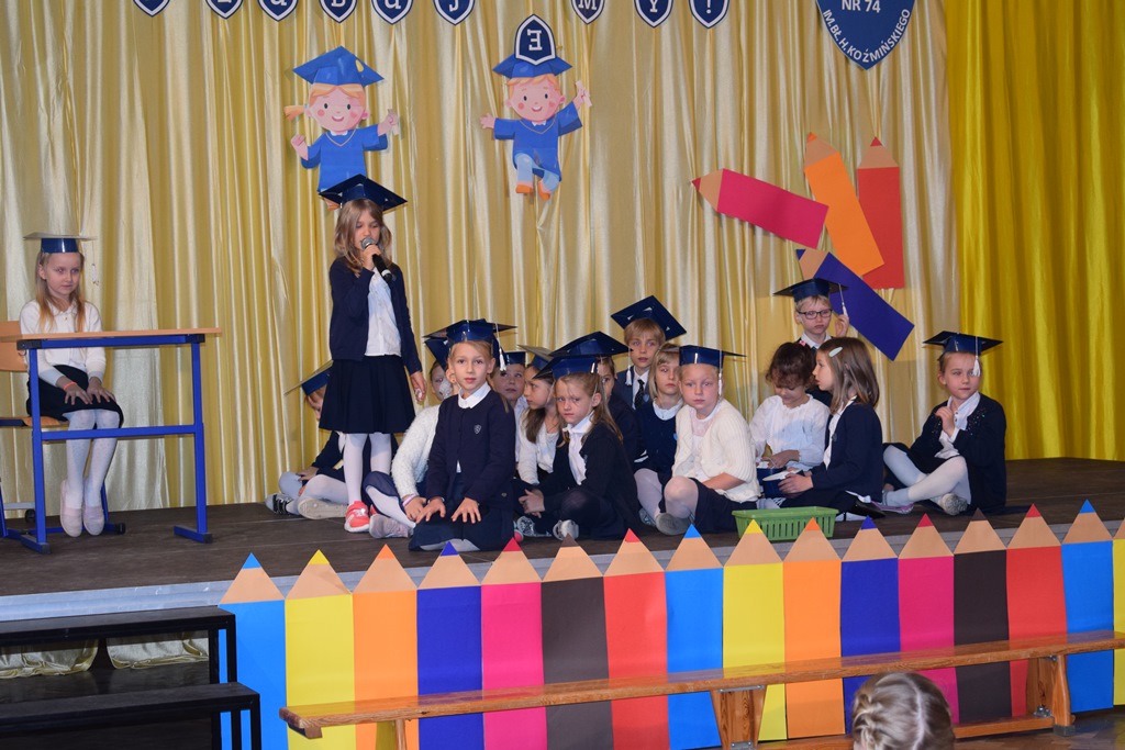 14 października 2022 r. dzieci z kółka teatralnego kl. I-III przygotowały krótką część artystyczną dla swoich nauczycieli. Wśród radości, dobrego humoru i wdzięczności, najmłodsi uczniowie złożyli serdeczne życzenia nauczycielom i pracownikom szkoły. Nie zapomnieli o drobnych upominkach – własnoręcznie zrobionych różach. Wychowawców dodatkowo udekorowali medalami dla wspaniałych nauczycieli. Następnie uczniowie klas pierwszych wystąpili ze swoim przestawieniem, które przygotowali z okazji ślubowania. Również tego dnia podczas zajęć wspominaliśmy postać św. Jana Pawła II w ramach Dnia Papieskiego.