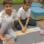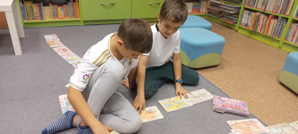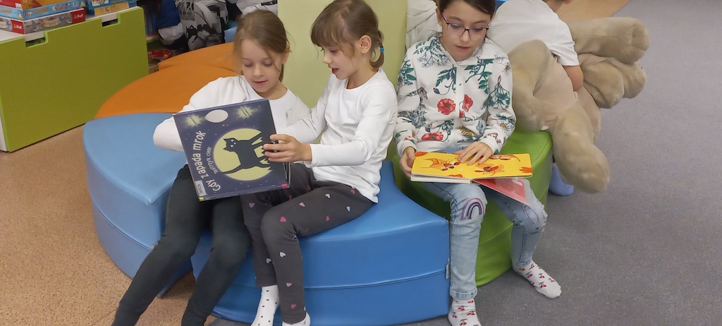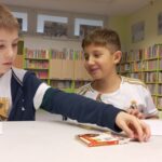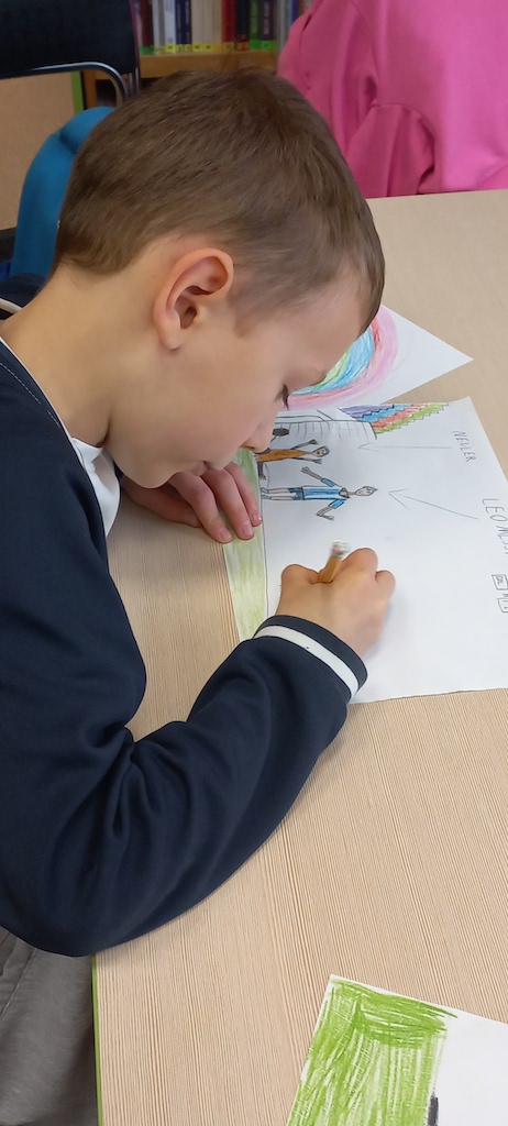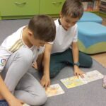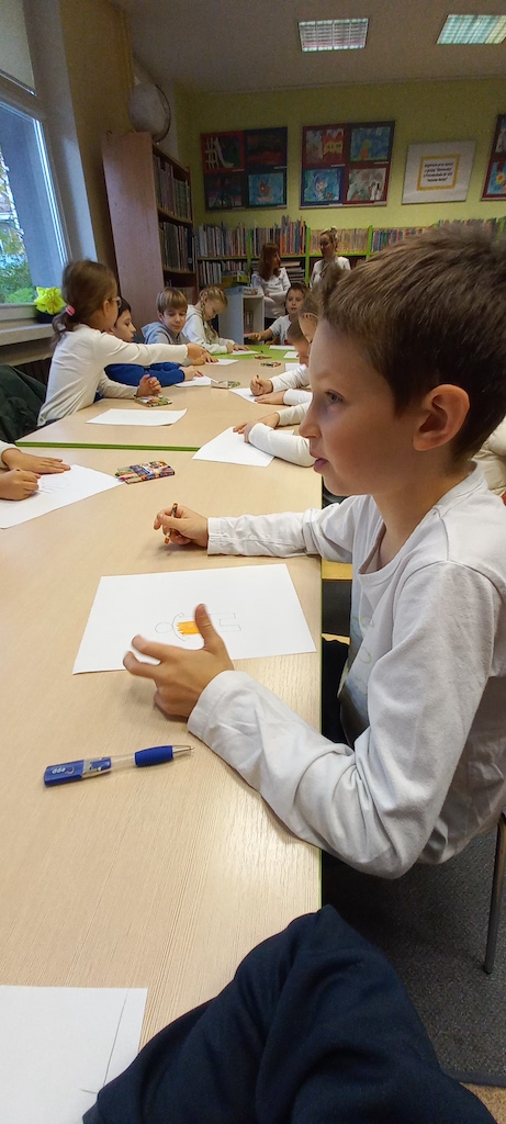 W październku klasy drugie były na lekcji bibliotecznej w Bibliotece dla Dzieci i Młodzieży. Uczniowie zapoznali się z regulaminem biblioteki oraz przypomnieli sobie zasady dobrego czytelnika. Mieli możliwość jeszcze raz zobaczyć książki z wczesniejszego etapu edukacji. Były to m.in. książki z samymi obrazkami, z dźwiękami, z kontrastem bieli i czerni, sensoryczne, składane, z elementami ruchomymi. Uczniowie chętnie opowiedziali o swoich ulubionych książkach, które do tej pory przeczytały. Wykonali rówież pracę plastyczną pt.: „Mój ulubiony bohater”.