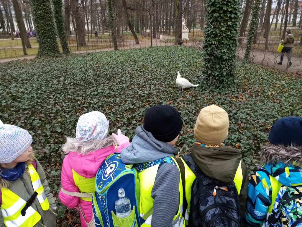 W ramach programu „Darmowy listopad w rezydencjach królewski” uczniowie klas trzecich odwiedzili Łazienki Królewskie. Uczestniczyli w zajęciach przyrodniczych pt. „Ptaki królewskie”. Pomimo późnej jesieni udało się wypatrzeć sporo skrzydlatych mieszkańców parku łazienkowskiego. Interesujące opowieści o ptakach uwieńczyło wspólne dokarmianie sikorek prosto z ręki. Niespodziankę sprawił także biały paw, który wyszedł nam na pożegnanie.