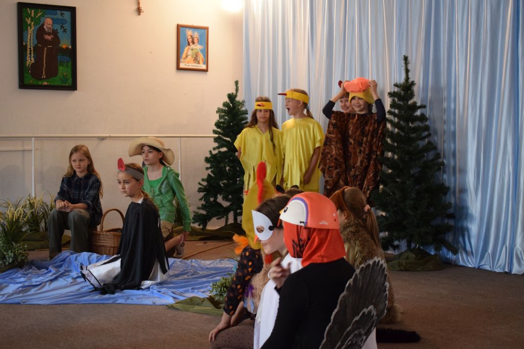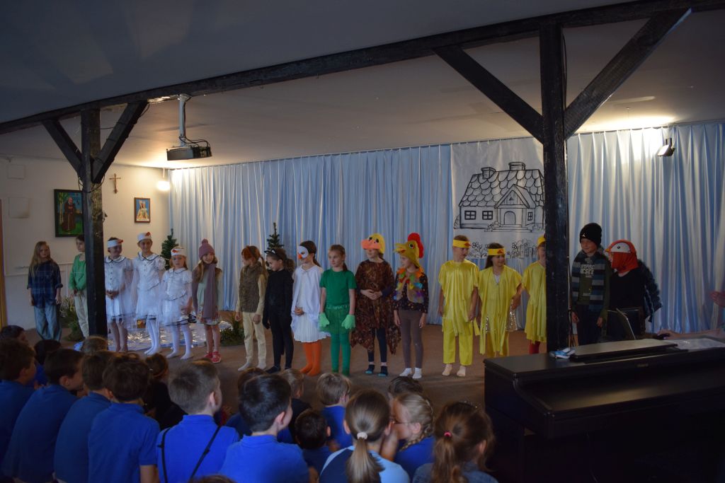 Dzieci z kółka teatralnego kl. I-III 21 maja zaprezentowały przedstawienie pt. „Brzydkie Kaczątko”. Spektakl wyraźnie przypadł do gustu oglądającym, na co wskazywały żywe reakcje publiczności i gromkie brawa. Ufamy, że przesłanie baśni Andersena zapadło w sercach dzieci i rodziców, którzy obejrzeli przedstawienie.