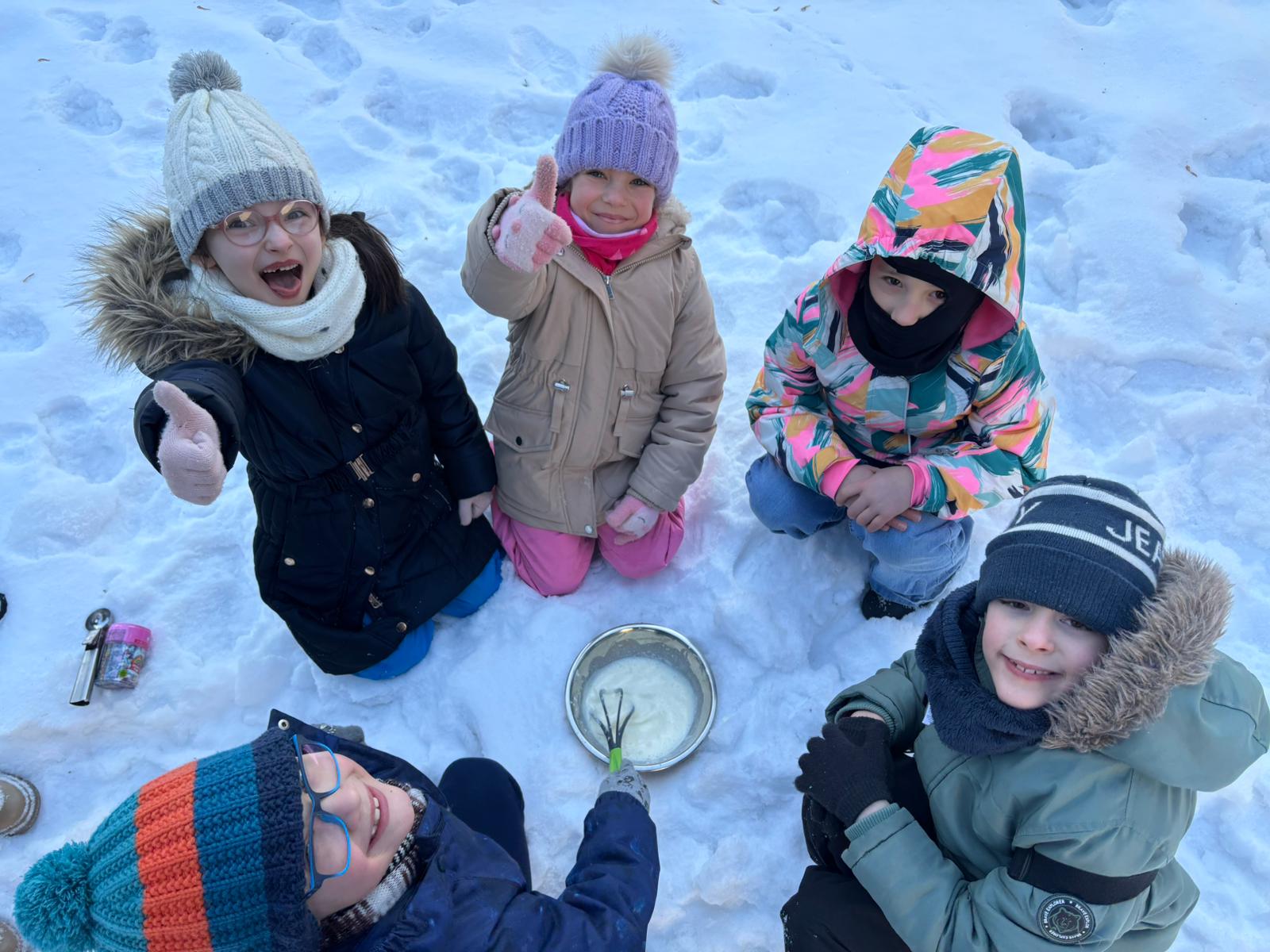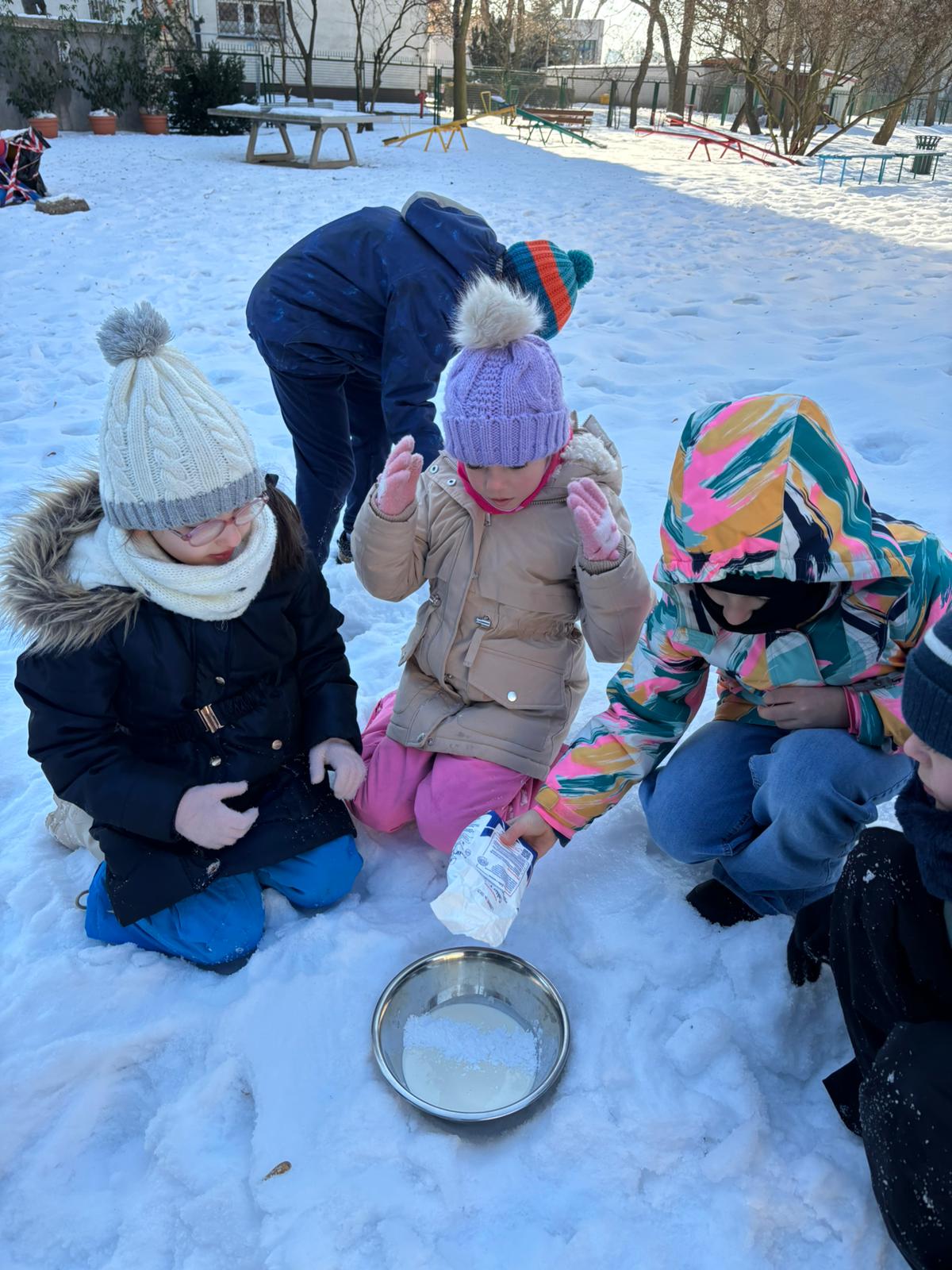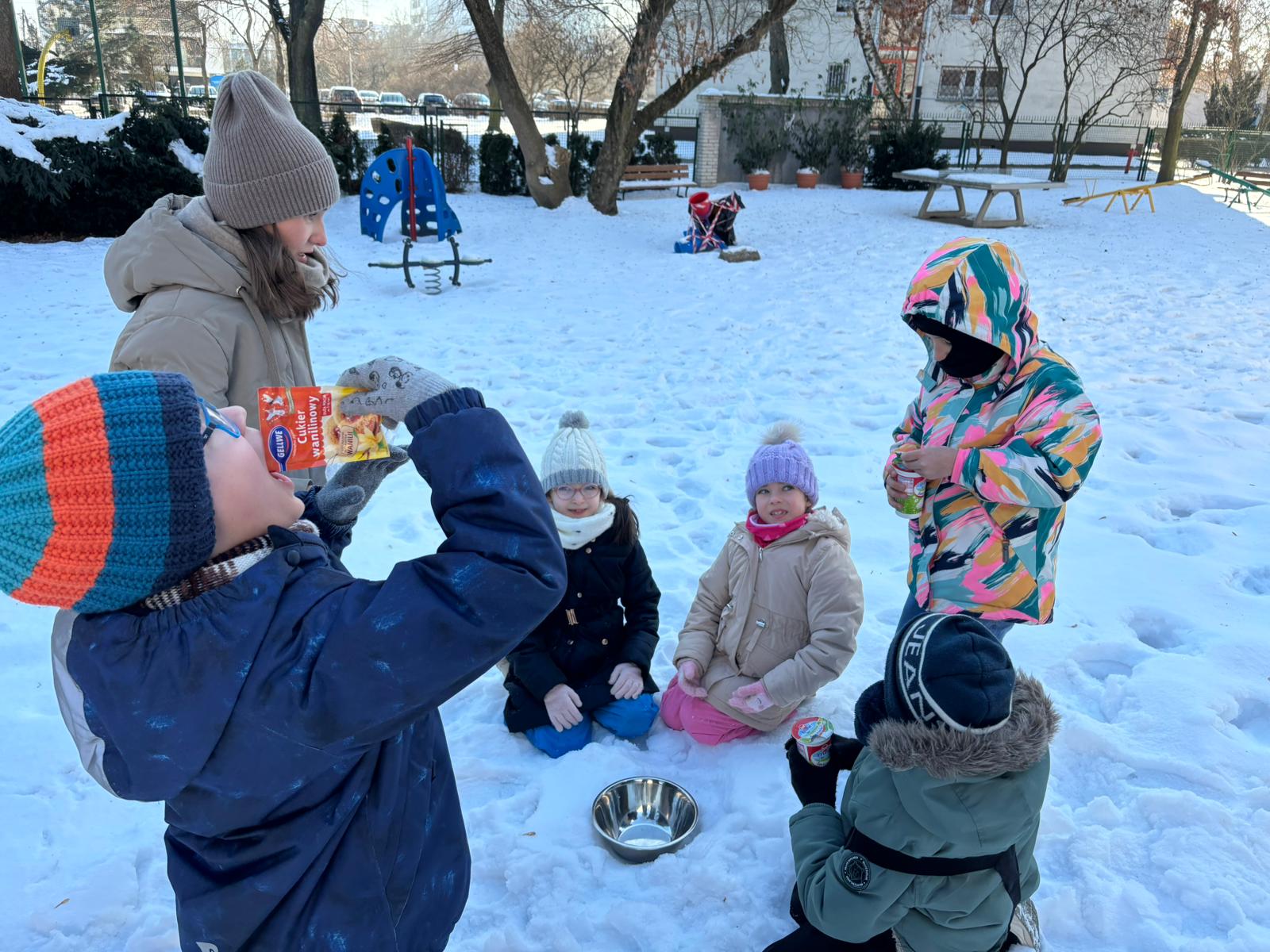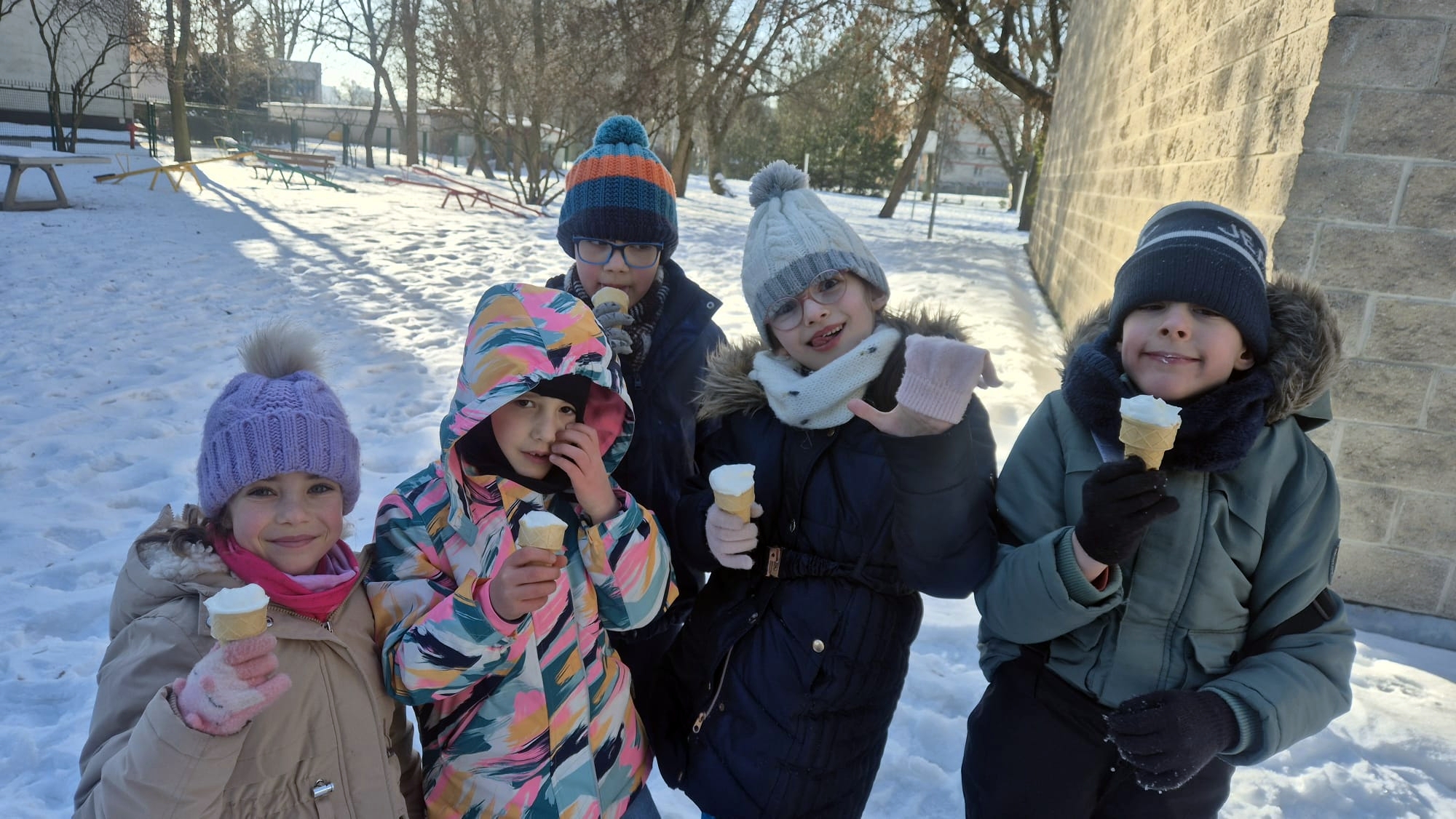 3 lutego uczniowie klasy 1b pod opieką pani Ilony, korzystając z uroków zimowej aury, spróbowali swoich sił w ostatnio bardzo popularnej zabawie – przygotowywaniu lodów na śniegu. Potrzeba było odrobiny siły do mieszania, szczypty „chemii” i… świetna zabawa była gwarantowana. Lody okazały się wyjątkowo smaczne, a dobry humor i radość niech towarzyszą wszystkim przez cały rozpoczynający się drugi semestr.