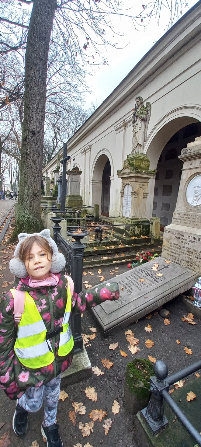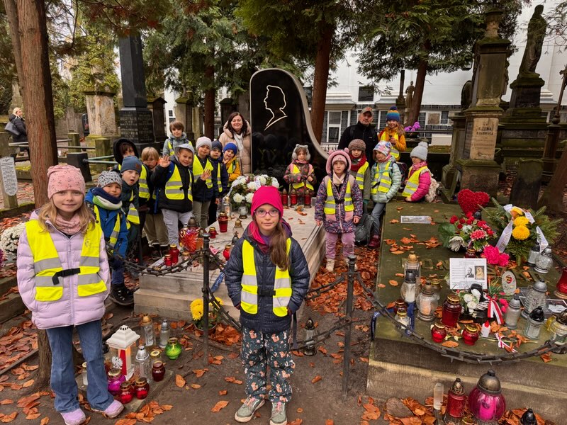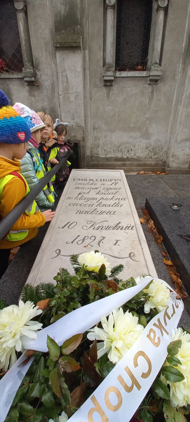 Dnia 12 listopada uczniowie klasy 2b wyszli na lekcję z przewodnikiem na Stare Powązki. Tematem przewodnim były osoby związane z Fryderykiem Chopinem. Nawiedziliśmy groby rodziców oraz sióstr sławnego pianisty, jak również groby osób, które miały duży wkład w wychowanie i rozwijanie talentów młodego Frycka. Pan przewodnik przybliżył nam sylwetki osób związanych z twórczością Chopina, m.in. Jerzego Żurawlewa, który był twórcą konkursów chopinowskich.
