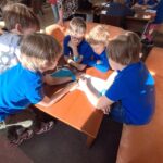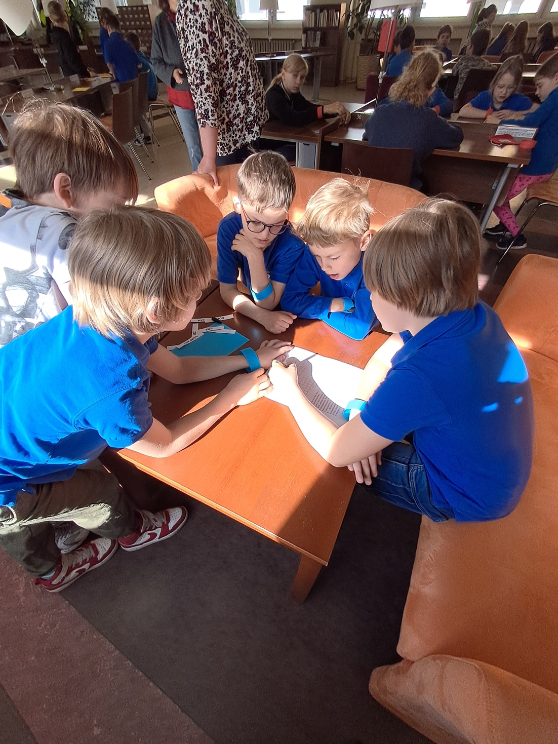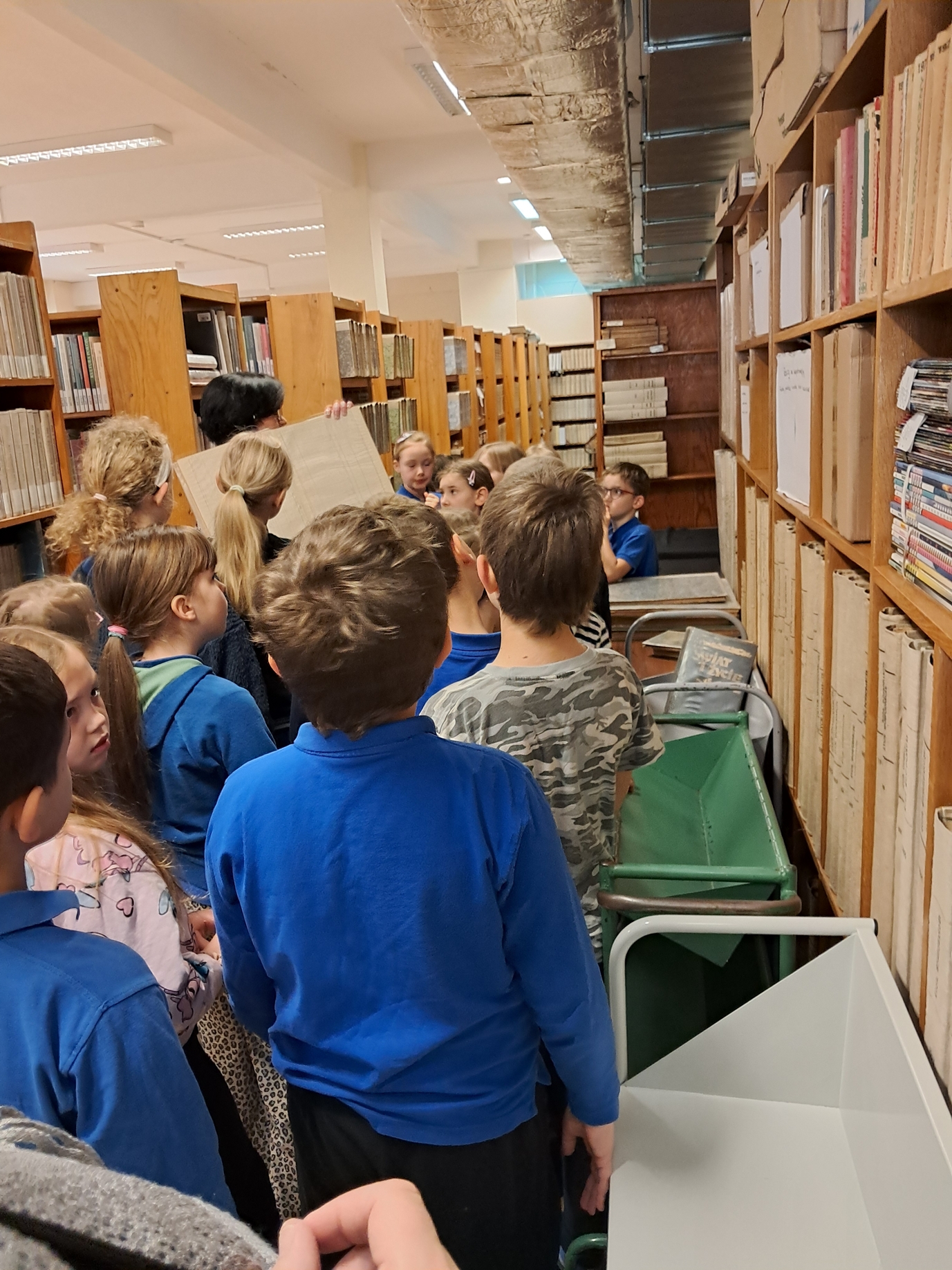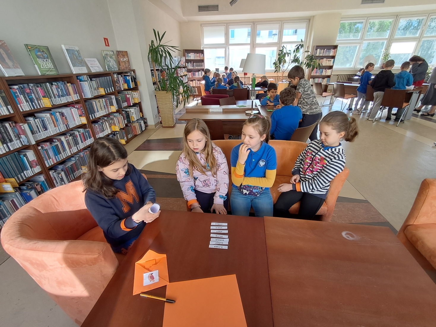 29 kwietnia klasy drugie wybrały się na wycieczkę do Biblioteki Publicznej dla Dzieci i Młodzieży przy ul. Romaszewskiego. Pani bibliotekarka zaprosiła dzieci do czytelni naukowej i zapoznała z księgozbiorem podręcznym oraz wytłumaczyła w jaki sposób należy szukać książek. Zaprowadziła także do magazynu bibliotecznego, gdzie pokazała najstarsze wolumeny i wytłumaczyła, co to jest księga inwentarzowa. Następnie podzieliła uczniów na grupy i zaprosiła do zabawy. Zadaniem uczniów było ułożenie wyrazów w kolejności alfabetycznej, rozwiązanie krzyżówki na podstawie bajek, dobieranie książek do haseł i ułożenie hasła o zaletach czytania. Na koniec lekcji p. Bibliotekarka zapoznała uczniów z dawnym sposobem katalogowania. Zadowoleni z lekcji uczniowie wrócili do szkoły.