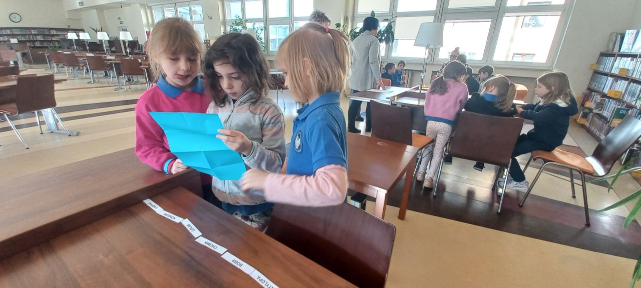 Dnia 8 kwietnia uczniowie klasy 1B wybrali się na wycieczkę do pobliskiej Czytelni Naukowej.  Podzielieni na grupy dostali do wykonania ważne zadania. Korzystając z sygnatury mieli odnaleźć książki, które skrywały w sobie elementy hasła. Zajęcia były bardzo ciekawe i zabawne! Przyniosły dużo radości i poszerzyły zainteresowania czytelnicze 🙂