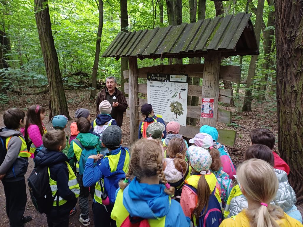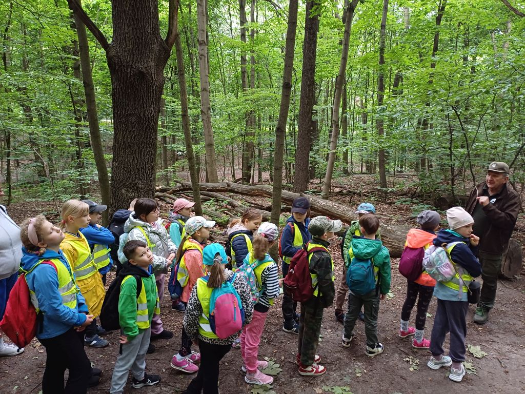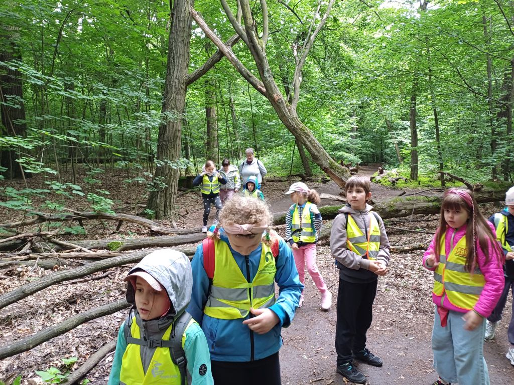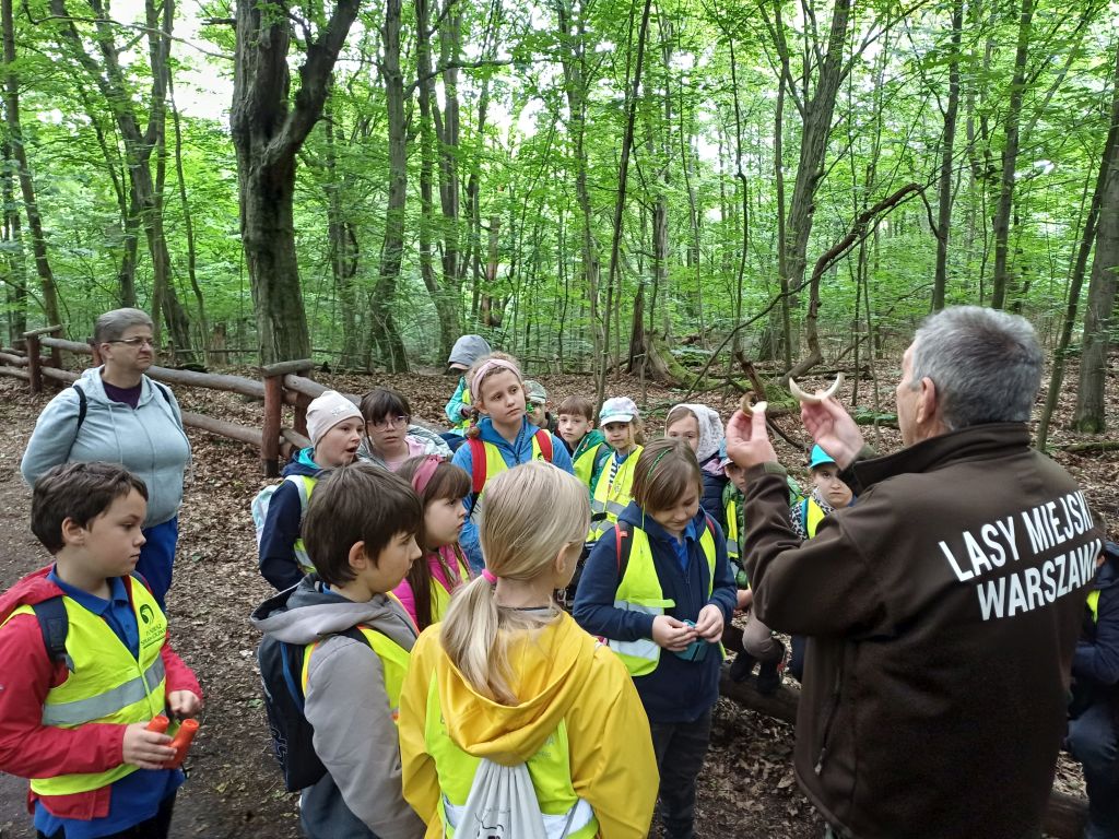 Ostatni miesiąc nauki jest czasem zachęcającym do różnych wycieczek, dlatego uczniowie klas drugich 13 czerwca wybrali się do Lasu Bielańskiego. Pan leśnik z Lasów Miejskich Warszawa zabrał dzieci w inspirującą wędrówkę po ścieżkach pobliskiego rezerwatu przyrody. Opowiedział wiele interesujących rzeczy o zwierzętach leśnych, a także różne ciekawostki o drzewach znajdujących się w tym starym i pięknym lesie.