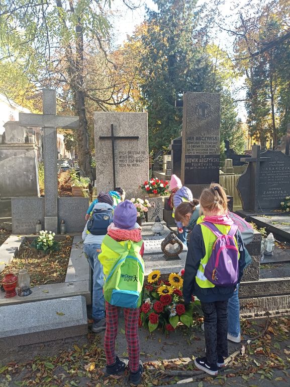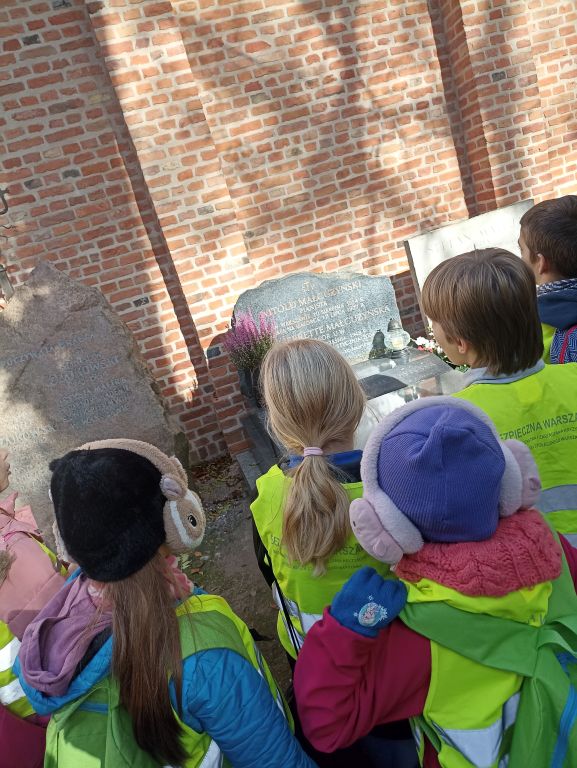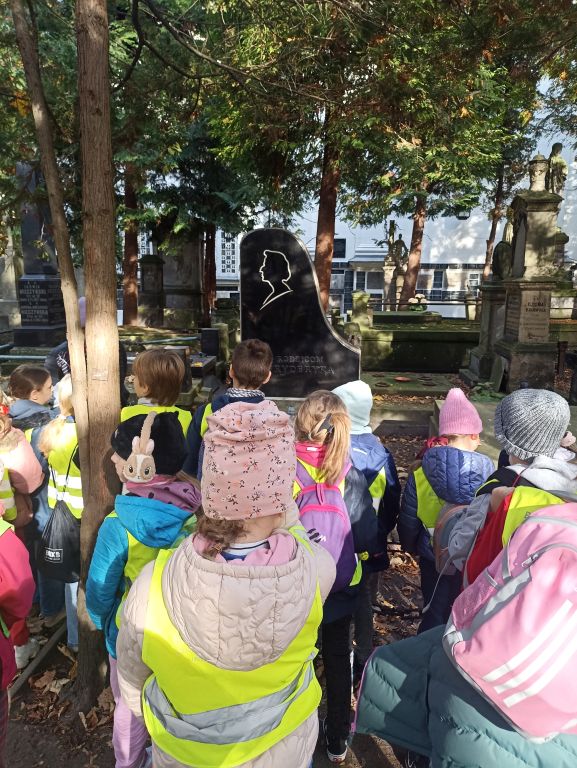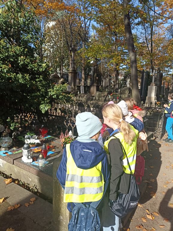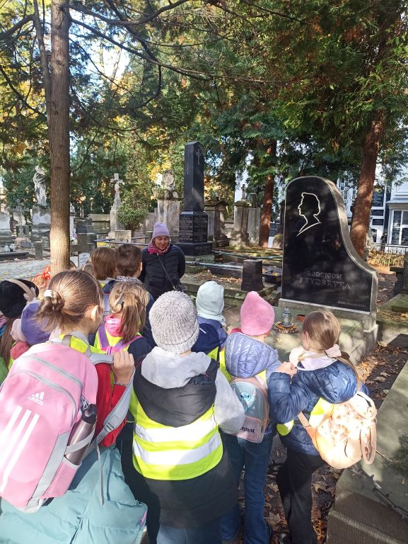Uczniowie klas trzecich byli na Starych Powązkach, po których oprowadzała pani przewodnik. Spacerowali szlakiem postaci związanych z Fryderykiem Chopinem.