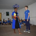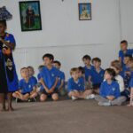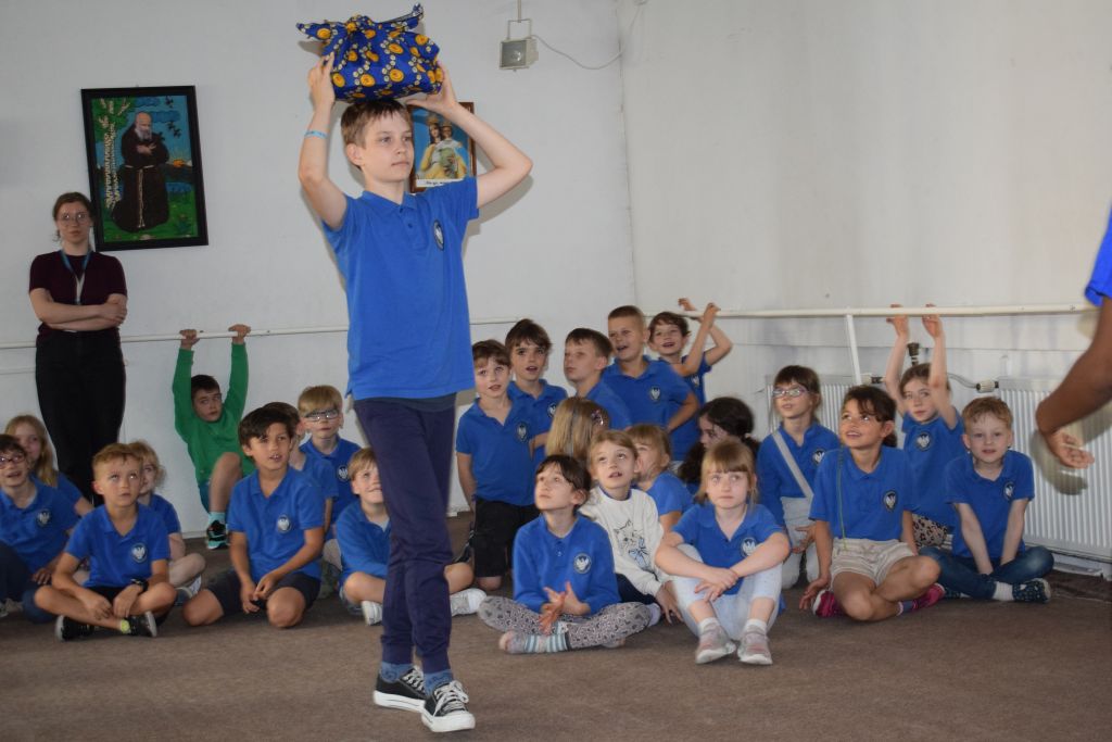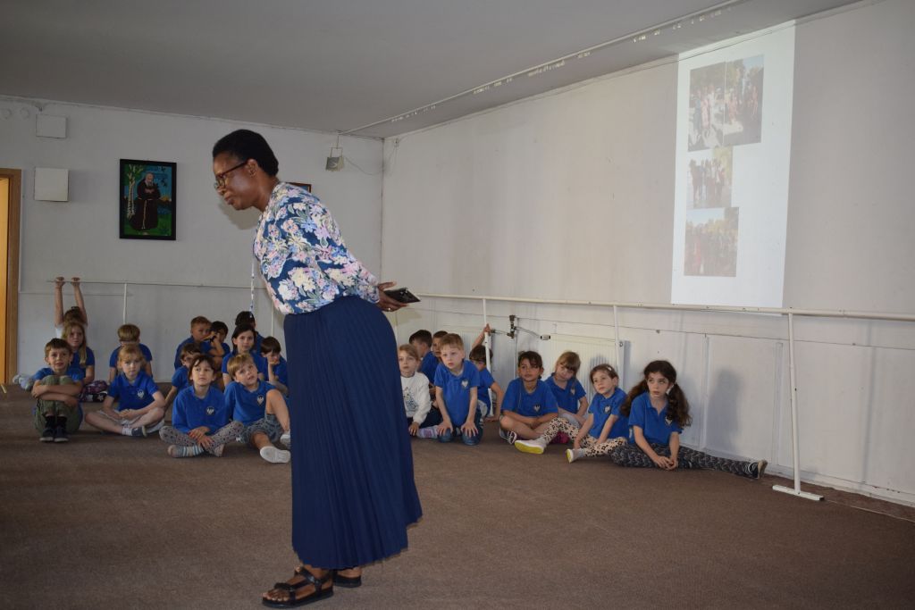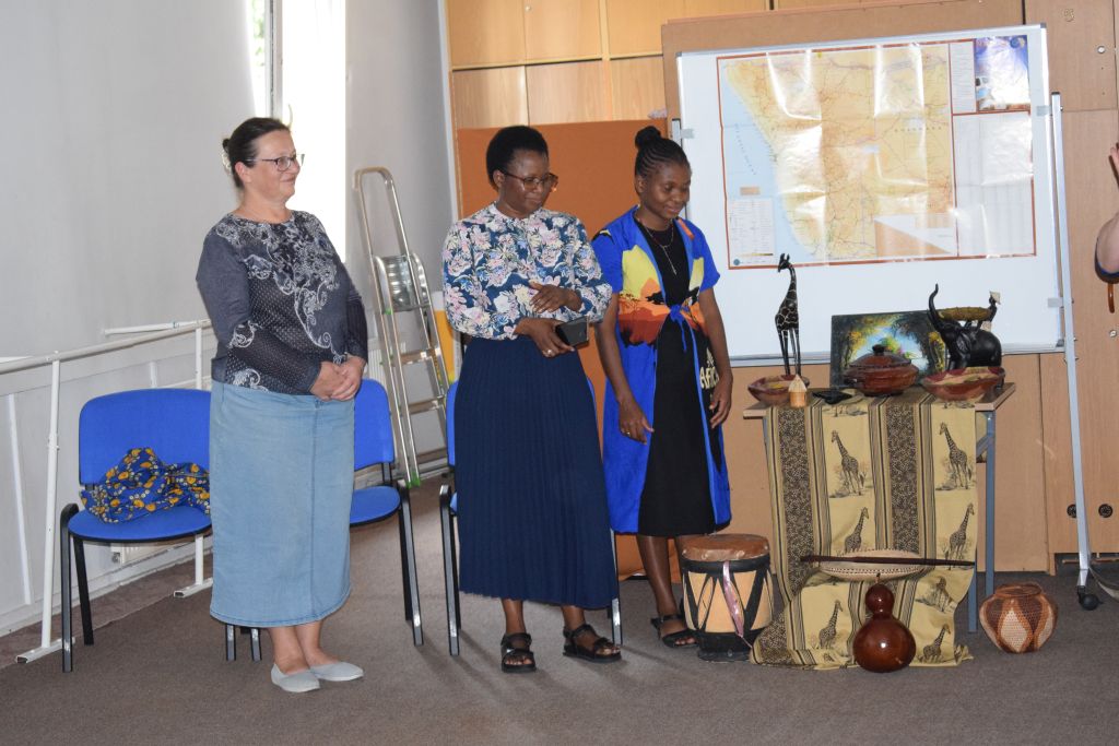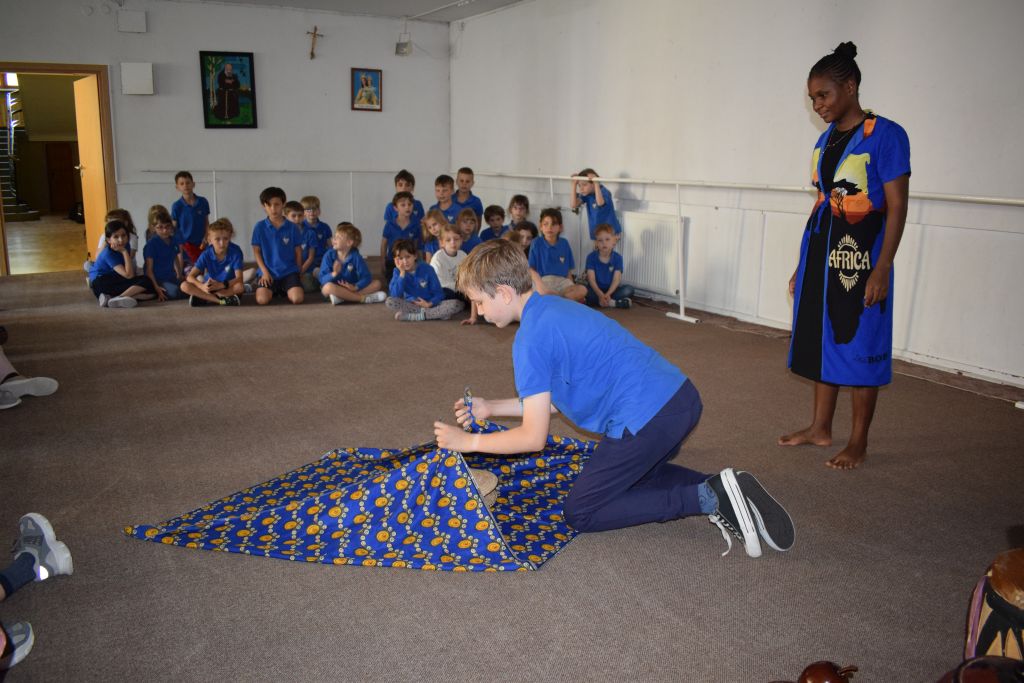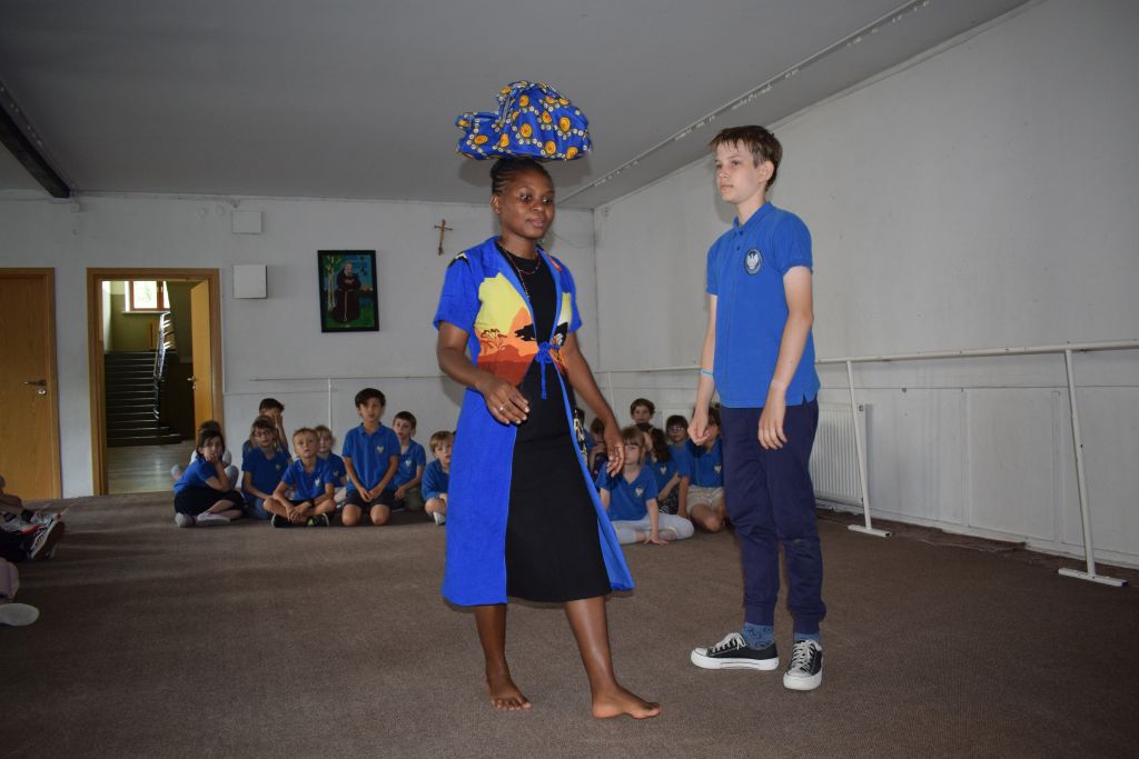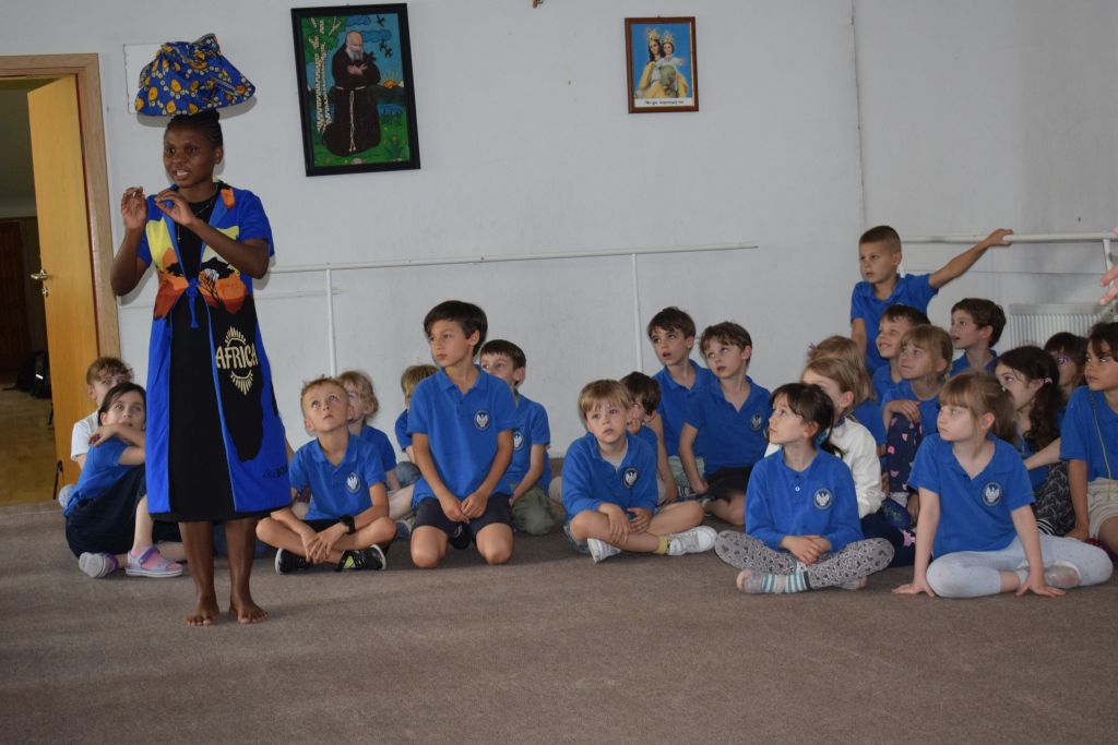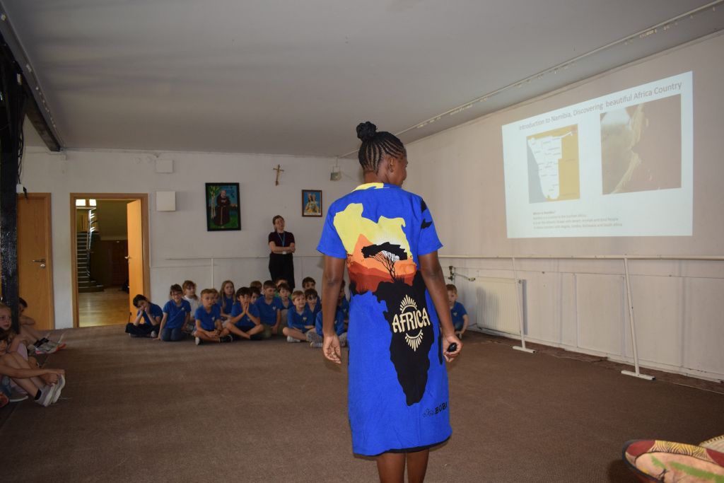 18 czerwca odwiedziły naszą szkołę Siostry Imienia Jezus posługujące w Namibii. Podczas spotkania z uczniami s. Bakhita opowiedziała o swoim kraju i zwyczajach ludności tubylczej. Uczniowie także mieli możliwość zatańczyć w rytmach afrykańskich, nosić na głowie podarunki i mieszać w afrykańskich miskach. Natomiast s. Faustina i s. Judyta przedstawiły działalność misyjną sióstr w Katima Mulilo. Po interesującej prezentacji nastąpiły podziękowania i wzajemne obdarowanie prezentami. Obecność sióstr misjonarek była miłym akcentem kończonym kolejny rok szkolny, w którym kontynuowana była pomoc najuboższym dzieciom w ramach akcji „Mój kolega z Afryki”.
