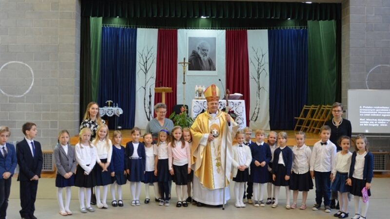 Przedostatnia niedziela października obchodzona jest w Kościele jako Niedziela Misyjna, która rozpoczyna Tydzień Misyjny. Ten czas pamięci i solidarności z misjonarzami na całym świecie w sposób szczególny podkreśliliśmy w tym roku szkolnym w naszej szkole. Obchodziliśmy go jako Kolorowy Tydzień Misyjny. Każdego dnia wspominany był inny kontynent: w poniedziałek – Afryka, wtorek – Ameryka, środa – Azja, czwartek – Australia i Oceania, piątek – Europa. Codziennie szkoła zmieniała barwy w kolory misyjne danego kontynentu za sprawą ubioru uczniów, jak i gazetkom poświęconym danemu obszarowi Ziemi. Nie zabrakło także wspólnej modlitwy różańcowej za misje i misjonarzy. Podczas apeli uczniowie mogli również zapoznać się z pracą misjonarzy oraz problemami, z którymi spotykają się mieszkańcy krajów misyjnych. Dopełnieniem były kiermasze organizowane przez uczniów, aby wesprzeć finansowo potrzebujących w Namibii. Ufamy, że ten czas utwierdzi i umocni zaangażowanie całej społeczności szkolnej w działalność misyjną, jaka jest podejmowana od kilku lat w szkole.