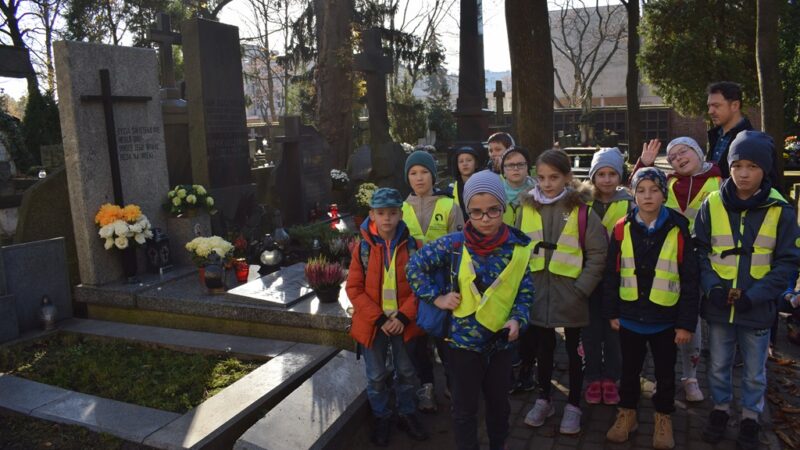 Listopad jest miesiącem szczególnej modlitwy za zmarłych i pamięci o tych, którzy przekroczyli już bramy wieczności. Dlatego uczniowie klas trzecich 3 XI wybrali się na Cmentarz Powązkowski. Odwiedzili groby pisarzy, którzy tworzyli dla dzieci: M. Kownackiej, S. Jachowicza i W. Chotomskiej. Modlili się także w miejscach pochówku osób związanych z naszą szkołą: Sł. B. M. Witkowskiej– Założycielki Zgromadzenia Sióstr Imienia Jezus, A. Koźmińskiego – brata o. Honorata oraz sióstr, dzięki którym powstał budynek szkoły.