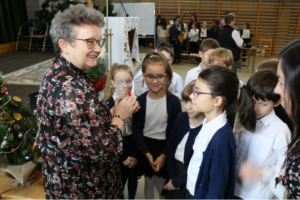 Dnia 22 grudnia, cała społeczność szkolna – nauczyciele, uczniowie wraz z wychowawcami, pracownicy i rodzice uczestniczyli we Mszy św. w intencji s.Dyrektor. Po Mszy św. wszyscy zebrani, złożyli Siostrze Dyrektor serdeczne życzenia z okazji zbliżających się imienin. Życzymy wielu łask!