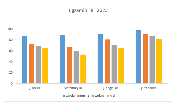 Przedstawiamy wyniki tegorocznych egzaminów ósmoklasisty. Składamy gratulacje i podziękowania dla wszystkich zaangażowanych w naukę i przygotowania.