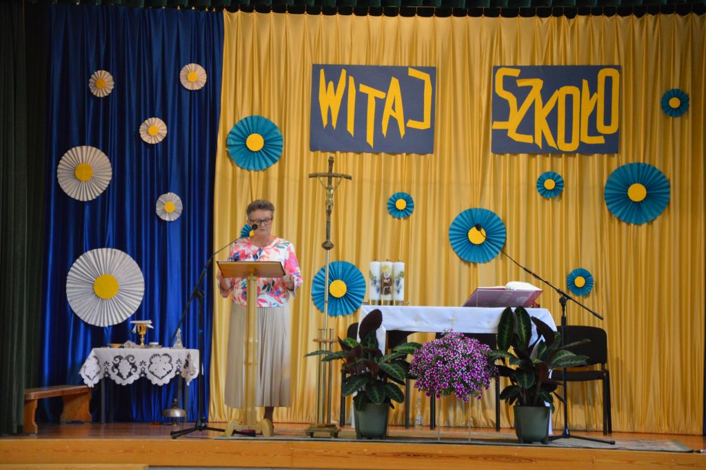 Na Mszy Świętej zawierzyliśmy dobremu Bogu nasze tegoroczne plany, nadzieje i troski. Następnie Siostra Dyrektor przywitała wszystkich zebranych - nauczycieli, pracowników, rodziców i oczywiście uczniów, w szczególności tych, którzy próg naszej szkoły przestąpili po raz pierwszy.