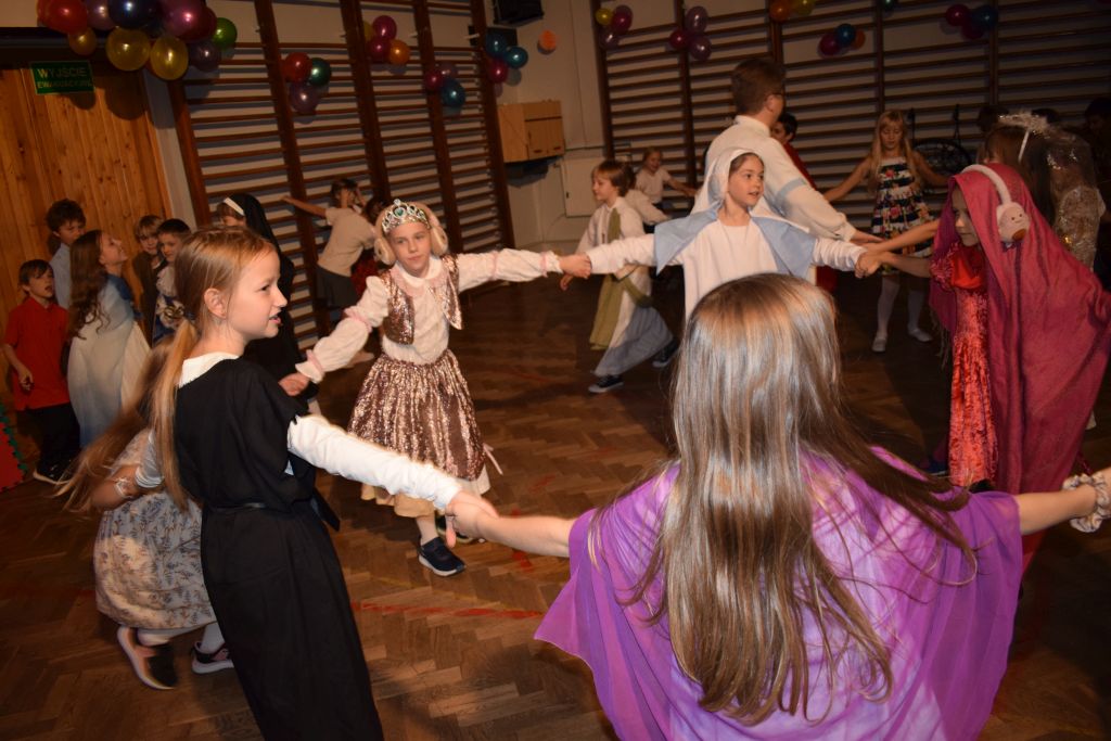 „Taki duży, taki mały może świętym być” – te słowa piosenki rozpoczęły Szkolny Bal Wszystkich Świętych, który odbył się 29 października. Uczniowie barwnie poprzebierani za swoich świętych patronów wspaniale się bawili tańcząc i śpiewając piosenki lednickie oraz inne dobrze znane przeboje muzyczne. Ufajmy, że radość płynąca ze wspólnego świętowania rozbudzi pragnienie świętości w każdym uczestniku tego balu.