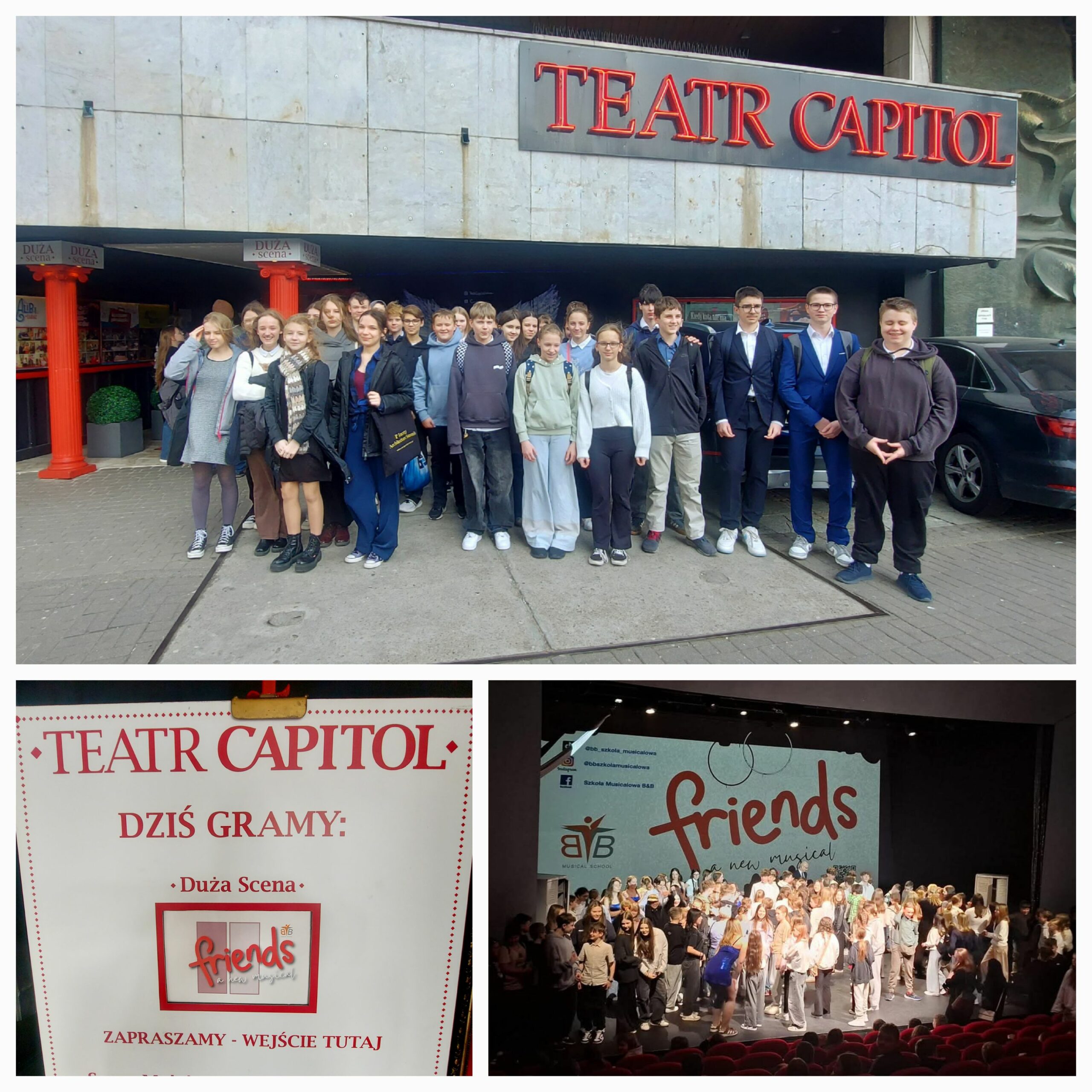11 marca uczniowie kl. 7 oraz 8a i 8b pod opieką wychowawców wybrali się do Teatru Capitol na musical Friends w zupełnie nowej odsłonie! Twórcy z nowojorskiego Broadwayu w jednej produkcji z młodymi polskimi artystami na deskach Teatru Capitol mówią stop przemocy w szkole i w życiu osobistym, stop nienawiści i stop hejtowi. Był to piękny, szalony, roztańczony, pełny emocji i wzruszających piosenek musical w wykonaniu młodych artystów. Spektakl ten poruszał ważne tematy, mówił o tym, że wzajemnie panujące wśród młodzieży hejtowanie, nie jest już modne! Po spektaklu odbyło się spotkanie z aktorami oraz dyskusja na ważne tematy poruszone w musicalu.