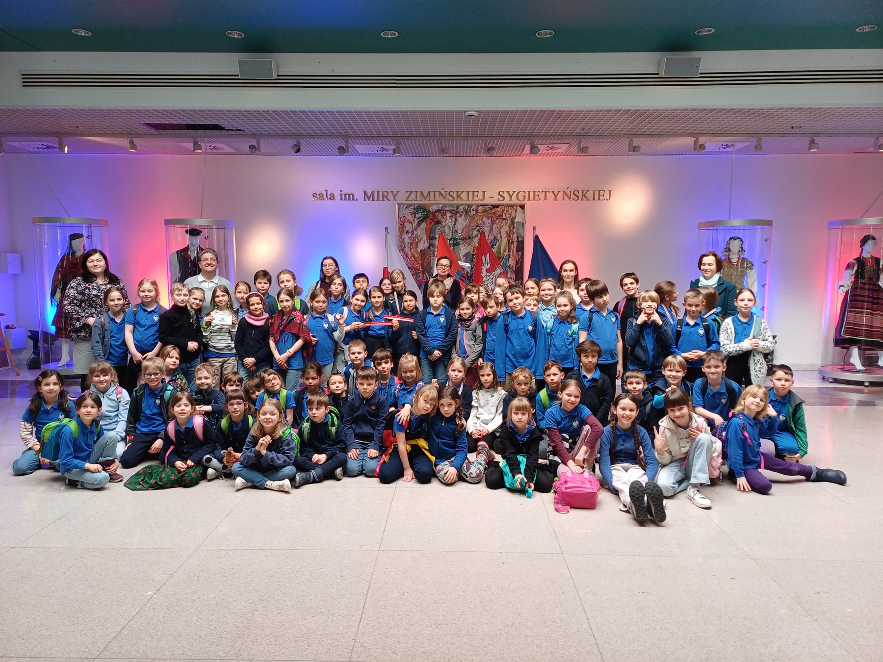 18 marca uczniowie klas I-III wybrali się do siedziby PZLPiT „Mazowsze”. Pierwsze kroki skierowali do Centrum Folkloru Polskiego, znajdującego się w historycznym Pałacu Karolin. Zwiedzili tam niezwykłą wystawę poświęconą różnym regionom Polski, poznając charakterystyczną muzykę ludową, stroje i zwyczaje. Uczestniczyli także w warsztatach „Wystrój się na ludowo”. Punktem kulminacyjnym dnia było obejrzenie widowiska muzycznego „Magiczna podróż - piękna nasza Polska cała”. Wspaniałe tańce, porywająca muzyka i barwne opowieści z nutką humoru, wprawiły młodych widzów w zachwyt i sprawiły wiele radości. To niezwykłe spotkanie z kulturą ludową na pewno na długo zapadnie w pamięć naszych uczniów. Pobyt realizowany był dzięki programowi „Kulturalna szkoła na Mazowszu”.