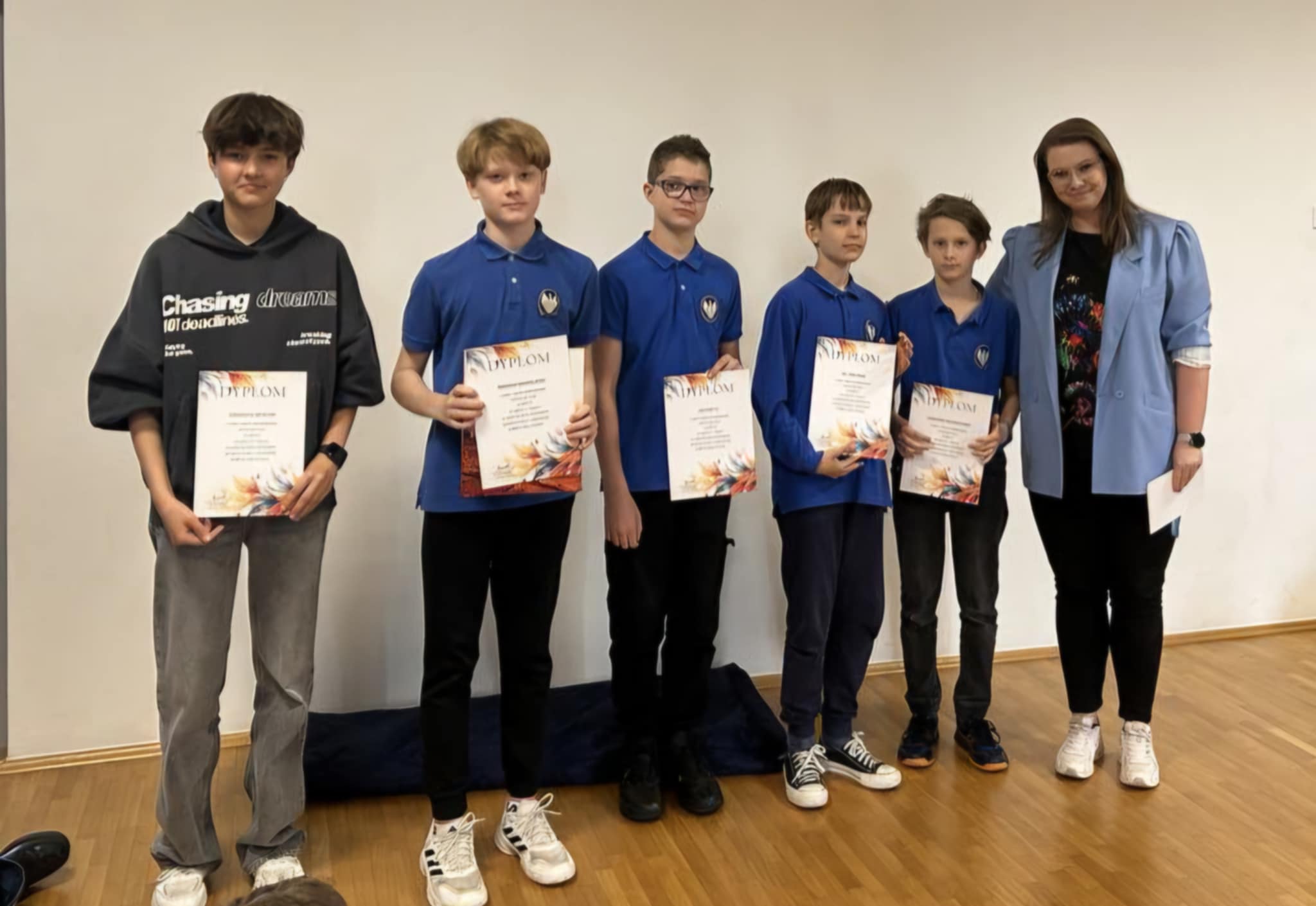 Skład drużyny chłopców: Maksymilian B., Aleksander C., Zbyszek I., Szymon K., Mikołaj K., Jerzy K., Michał S., Jonasz S., Mksymilian Z.