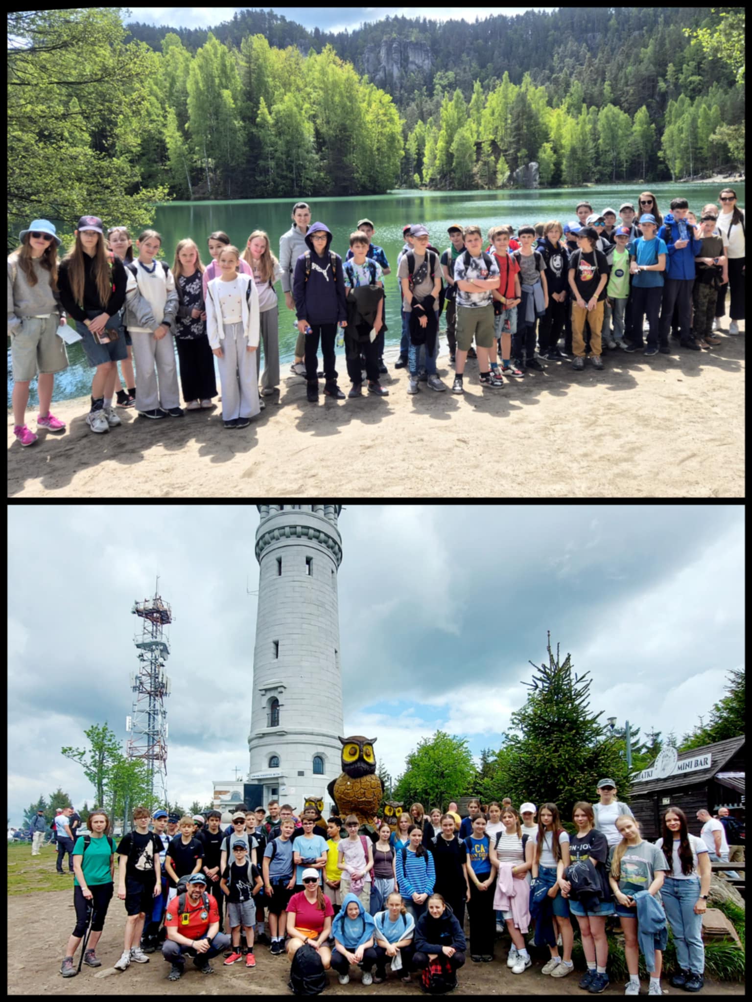 Za nami tygodniowy pobyt na Zielonej szkole w Sudetach. Mieliśmy wiele wspaniałych atrakcji- odwiedziliśmy kopalnię złota w Złotym Stoku, Skalne Miasto w Czechach i twierdzę Kłodzko. Odbyliśmy także wędrówkę na szczyt Wielkiej Sowy i pływaliśmy łódką po Jeziorze Bystrzyckim. Czas dopełniła zabawa w hotelowej strefie SPA, na kręglach i w pokojach. W drodze powrotnej odwiedziliśmy Wrocław, gdzie szukaliśmy rozmaitych krasnali a w każdym odwiedzonym przez nas miejscu przewodnicy raczyli nas ciekawymi opowieściami. Było dużo śmiechu i radości, także zmęczenia, ale wszyscy wróciliśmy w jednym kawałku do domów, zatem wyjazd uznajemy za udany 😊