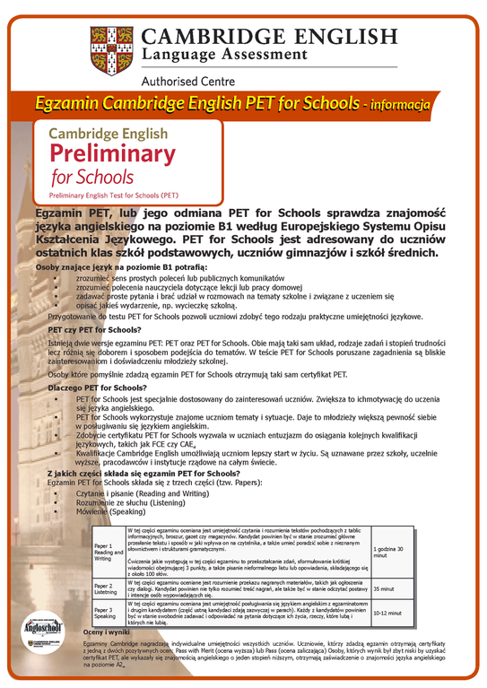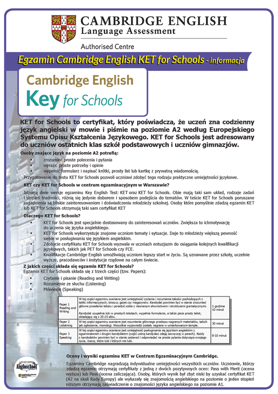 o egzaminach Cambridge KET oraz PET